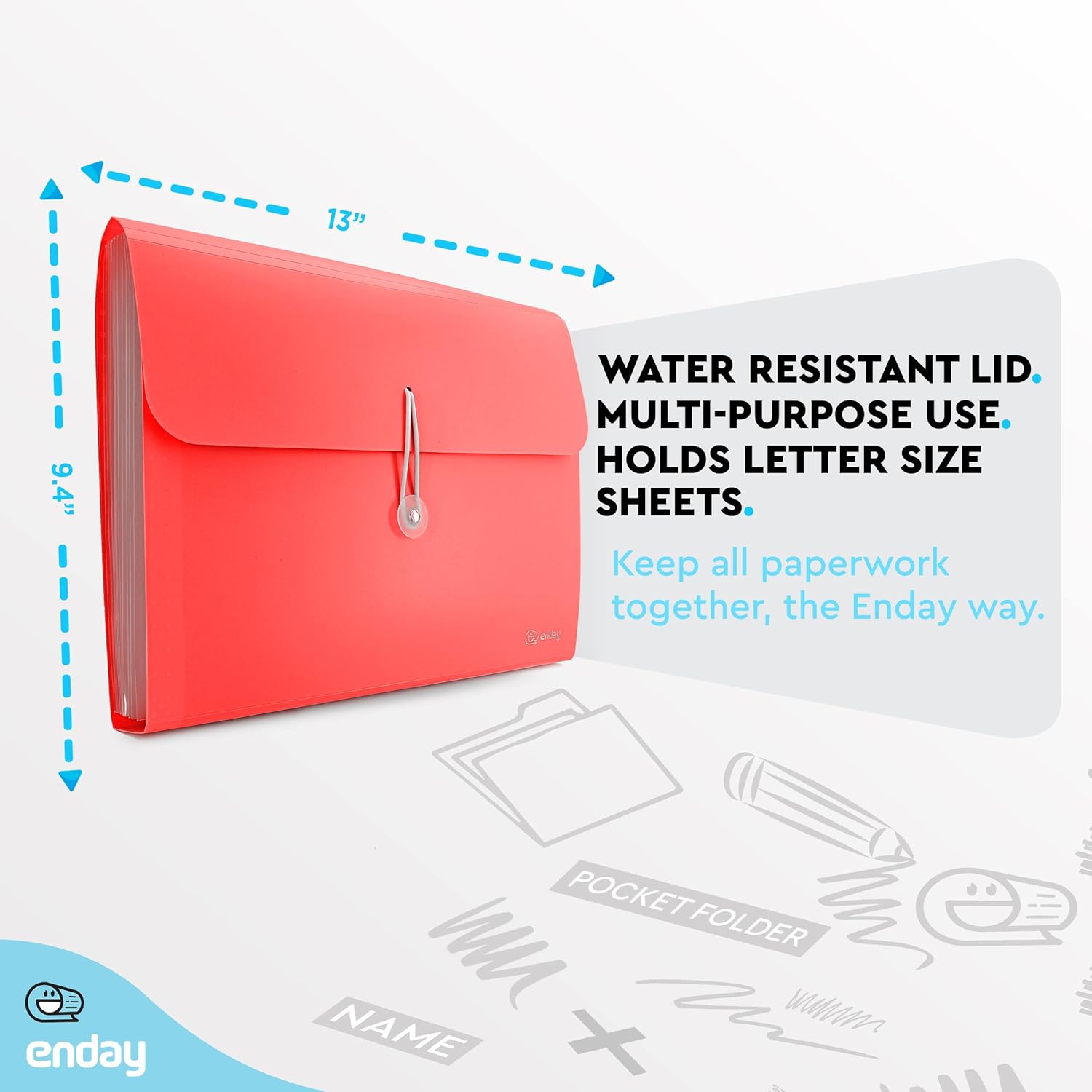 Accordion File Organizer 13 Pocket Expanding File Folder with Labels, Accordion File Organizer Letter Size Letter A4 Paper for Receipts, Bills and Documents 13" x 9.5” –by Enday