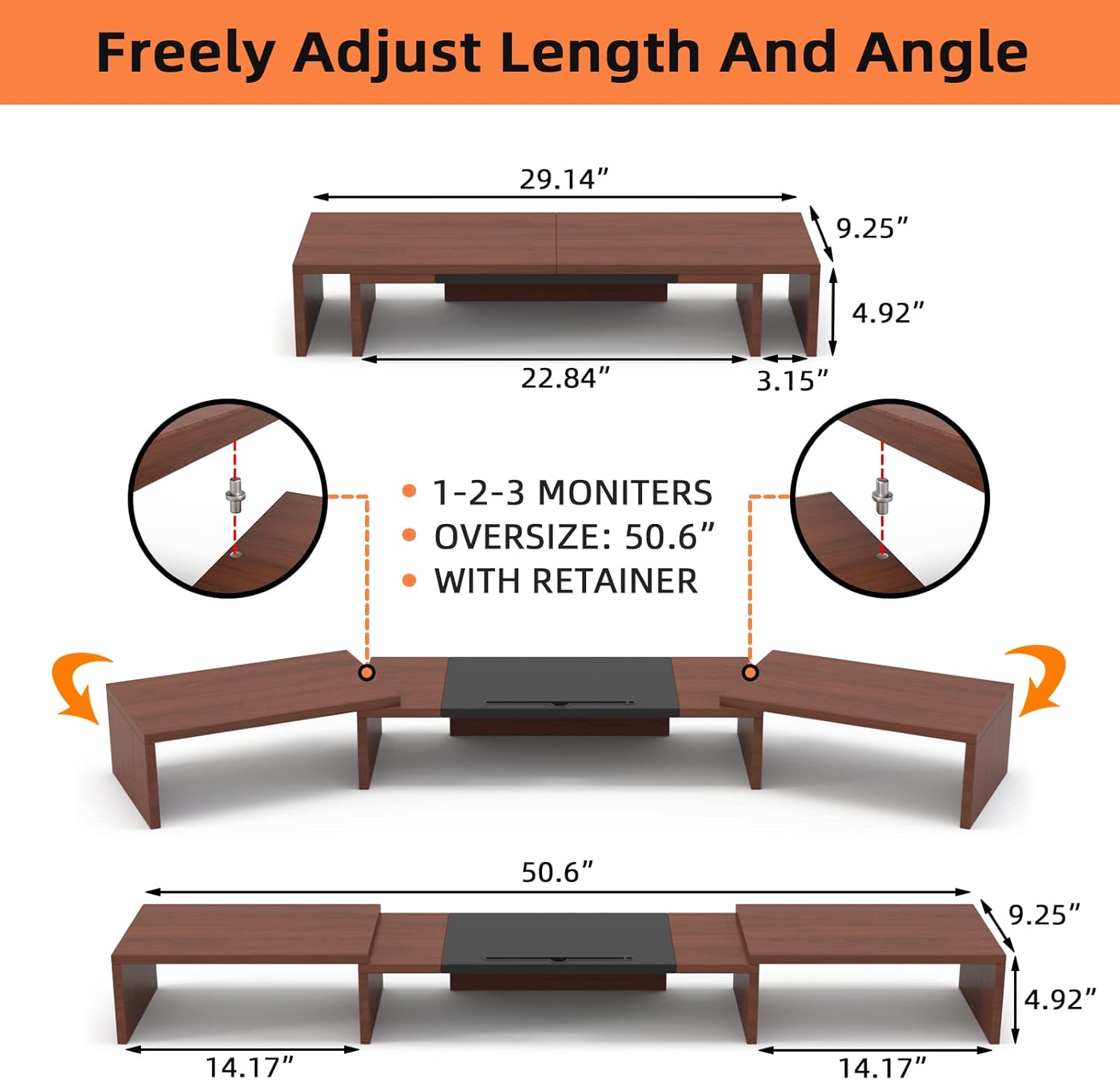 - 【 EXTRA LARGE FOR 1-2-3 MONITORS 】The size of monitor stand was improved to offer enough space for using 1-2-3 monitors together. The length of triple monitor stand can be changed from 29.14" to 50.6",Put your items together will help you organize and make your work more efficient!