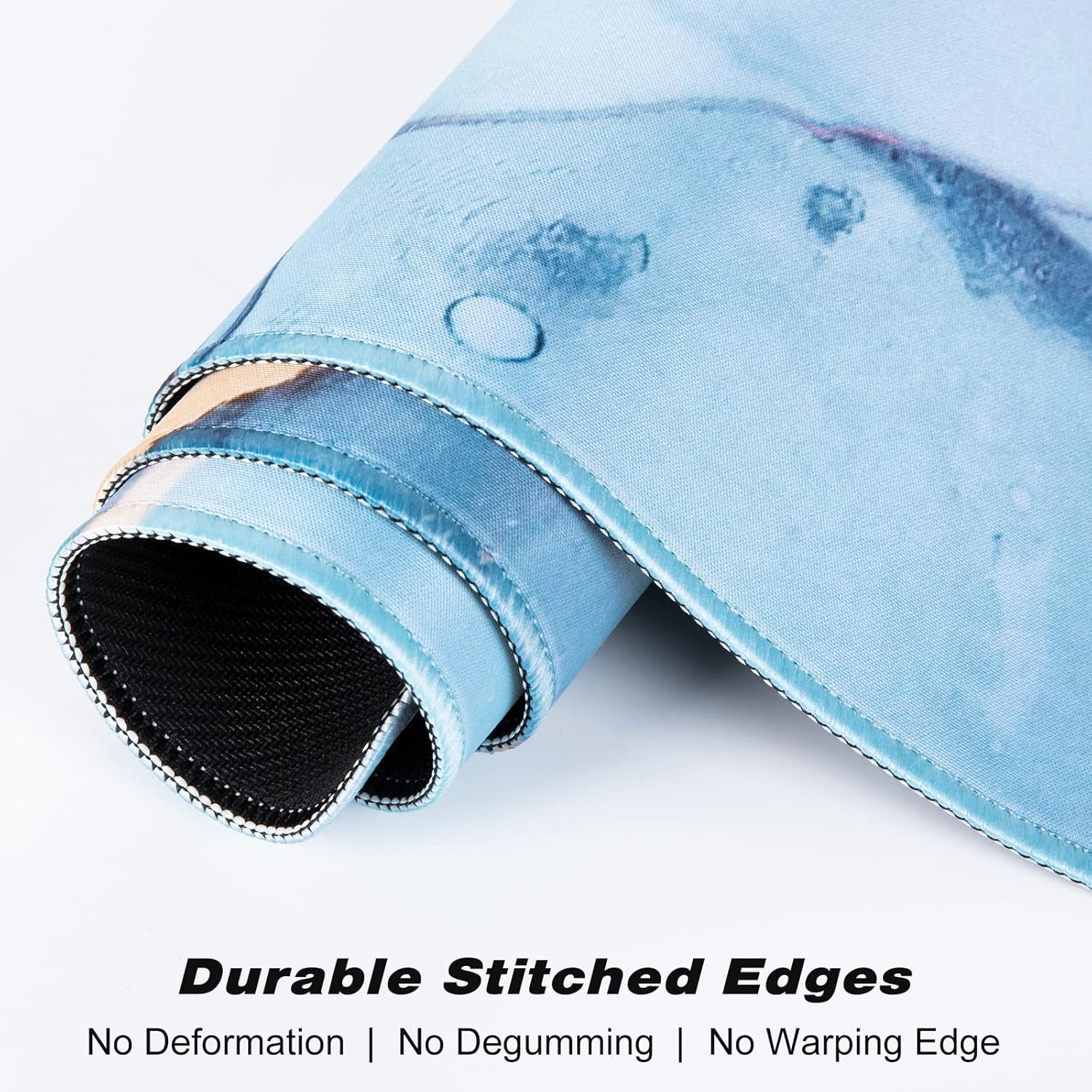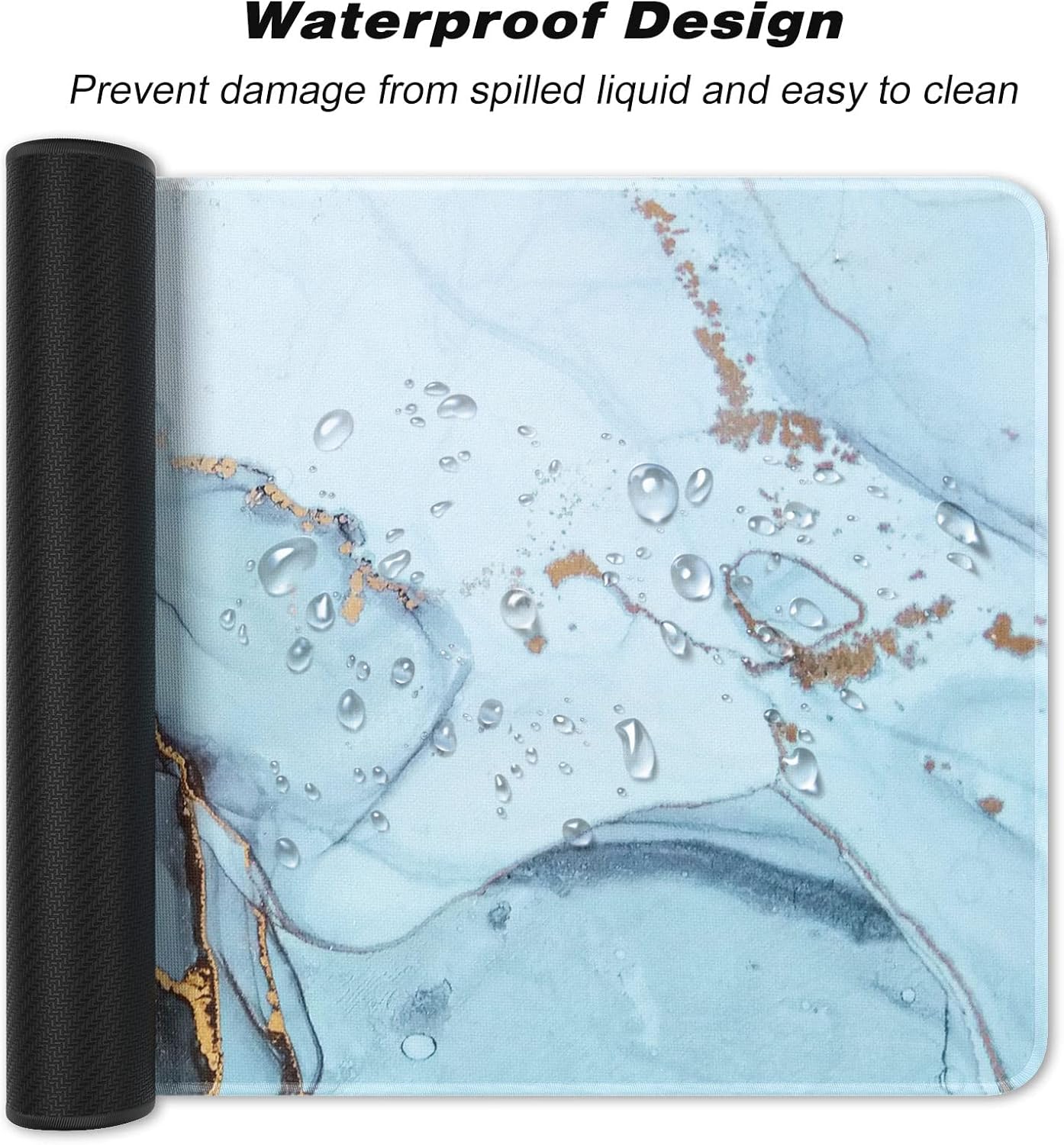 Extended Large Mouse Pad, XXL Gaming Desk Pad 31.5 x 15.7 Inch, Big Computer Keyboard Mousepad, Waterproof Mouse Mat with Stitched Edges and Non-Slip Base for Office Gaming, Blue Marble