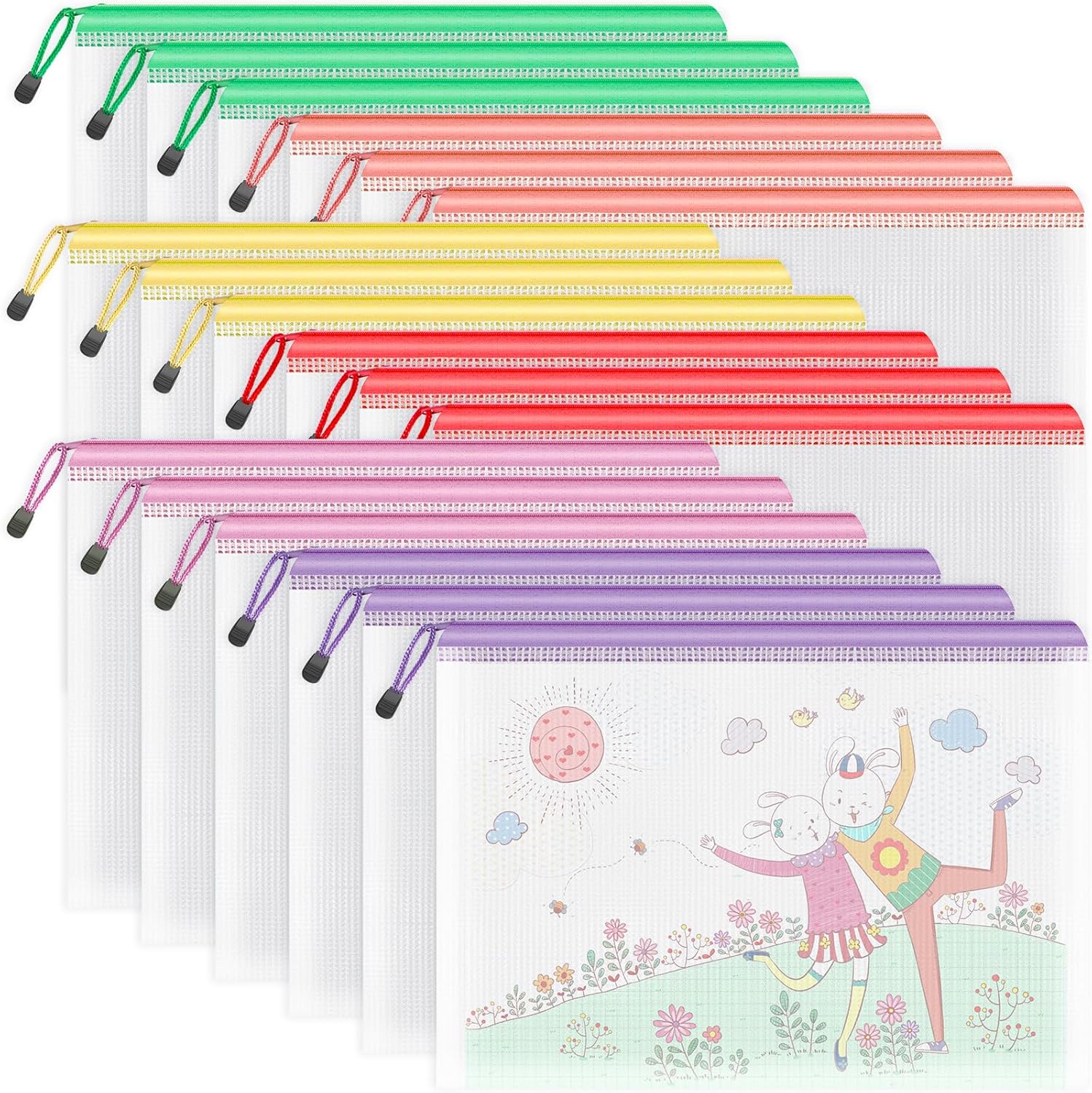 Umriox Zipper Mesh Document Pouch, 13.0 x 9.0 in (6 Colors, 18 Packs), Clear Zipper Pouches, Waterproof Zipper Pouches for Office Supplies Cosmetics Travel Storage