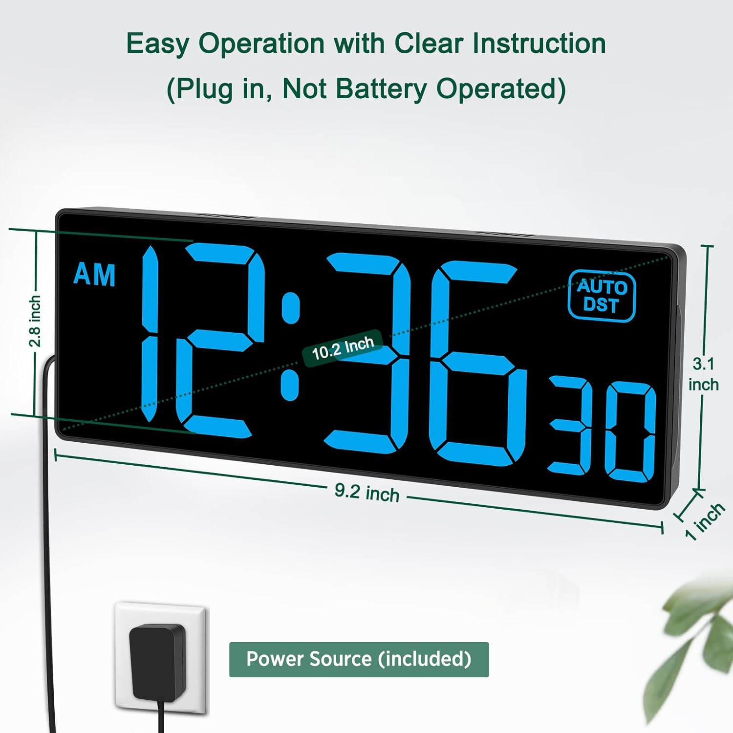 - ๐๐ฅ๐ฎ๐ ๐ข๐ง ๐๐๐๐ฉ๐ญ๐๐ซ ๐๐ฅ๐๐๐ญ๐ซ๐ข๐ ๐ฉ๐จ๐ฐ๐๐ซ๐๐ ๐๐ง๐ ๐๐๐ญ๐ญ๐๐ซ๐ฒ ๐ฆ๐๐ฆ๐จ๐ซ๐ฒ - Power adapter (included) operates this digital wall clock. Battery back-up function could help you get rid of resetting time & alarm after power outage with 2 AAA batteries (not included).