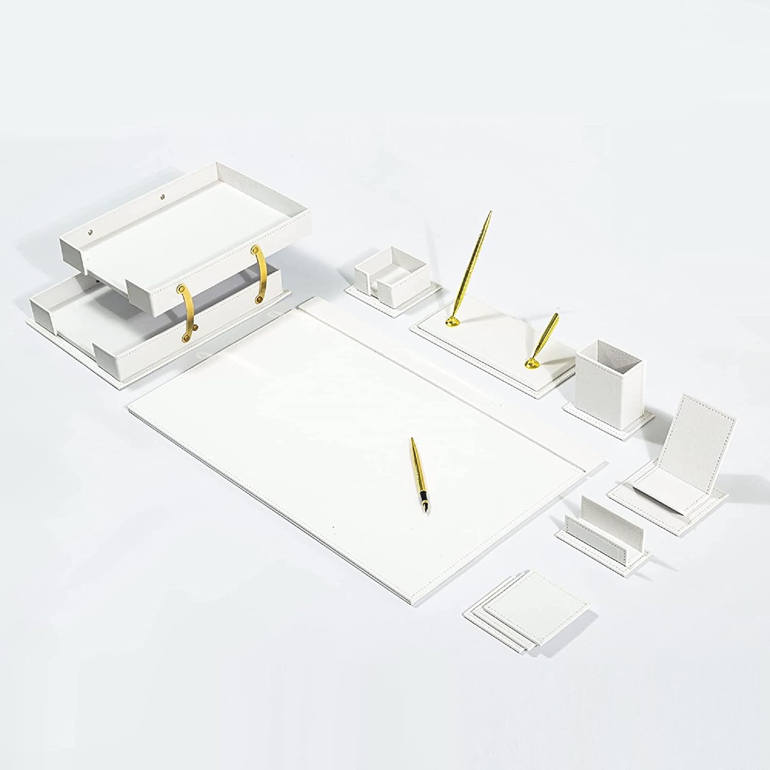 MOOGCO Bonded Set - Desk Accessories - Leather Desk Organizer - Bonded Leather Set - Office Desk Accessories - Home Office Accessories - Desk Supplies - Leather Desk Set - Office Accessories