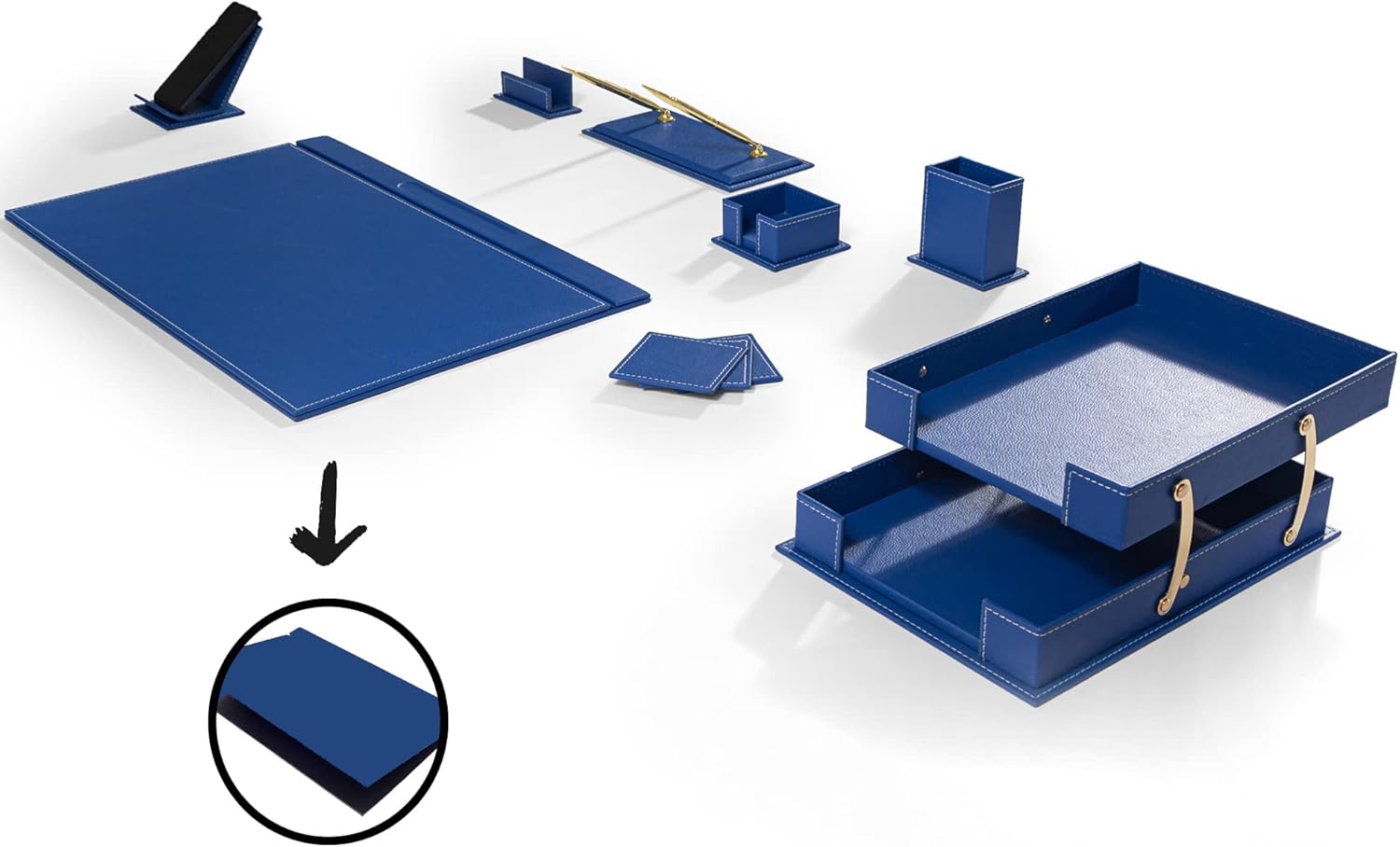 - The bottom of each of our desk accessories and workplace organizers is lined with a protective velveteen backing to ensure the surface of your desk stays scratch and scuff free.