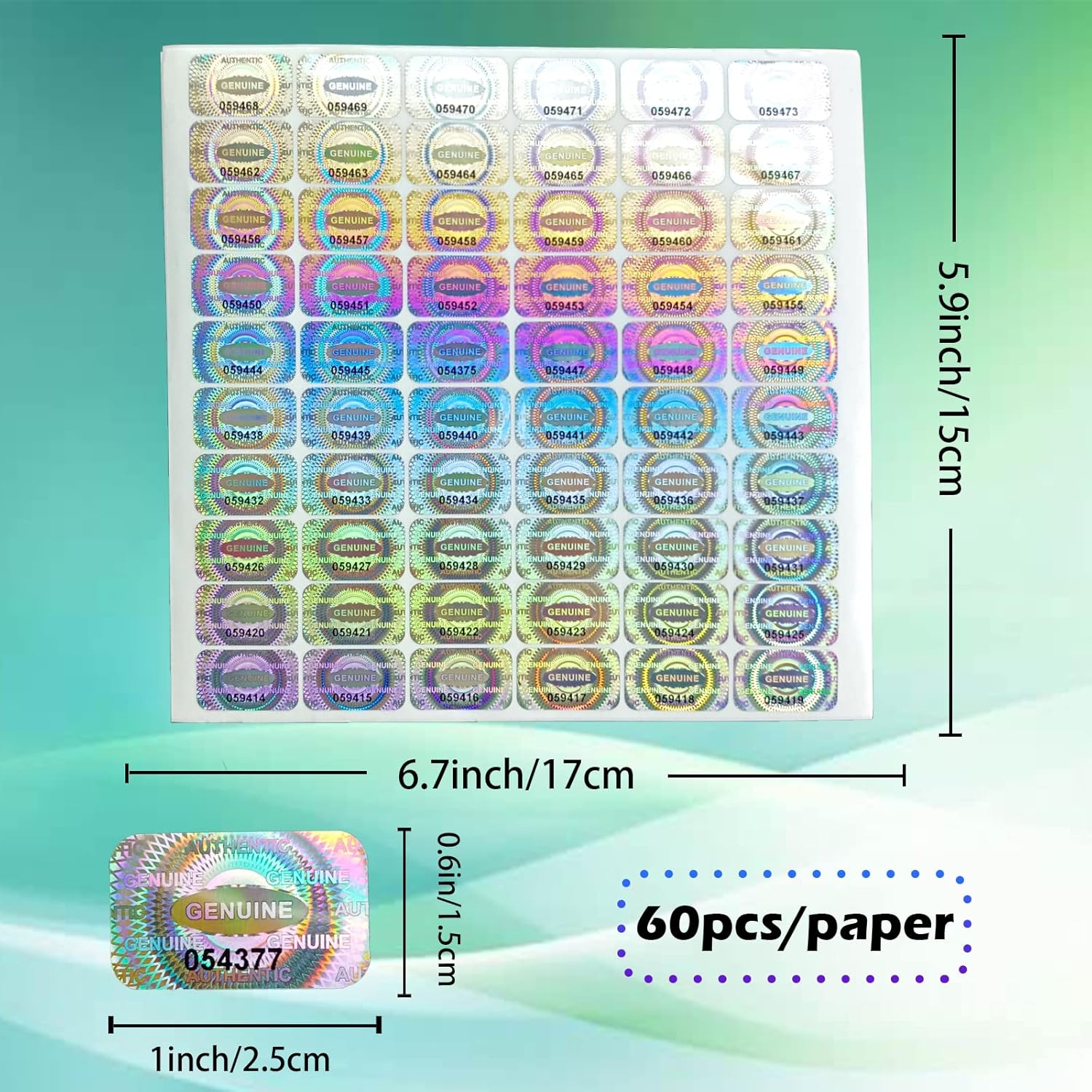 Holographic Tamper Evident Stickers 380pcs Security Sticker Warranty Void Seal Tamper Proof Labels with Unique Sequential Serial Numbering (1 X 0.6 Inch,GQYH)