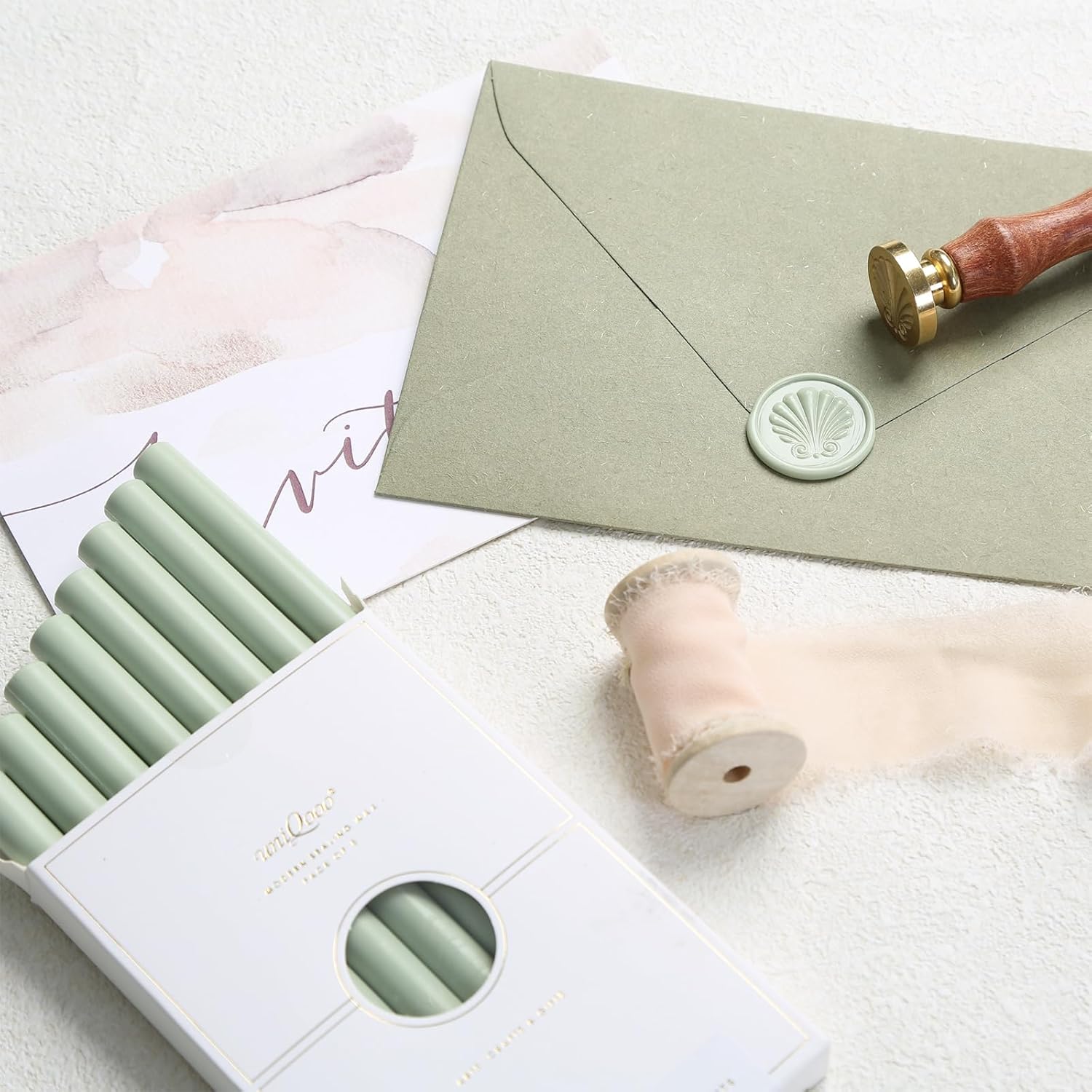 UNIQOOO Mailable Glue Gun Sealing Wax Sticks for Wax Seal Stamp - Sage Green, Great for Wedding Invitations, Cards Envelopes, Snail Mails, Wine Packages, Gift Ideas, Pack of 8