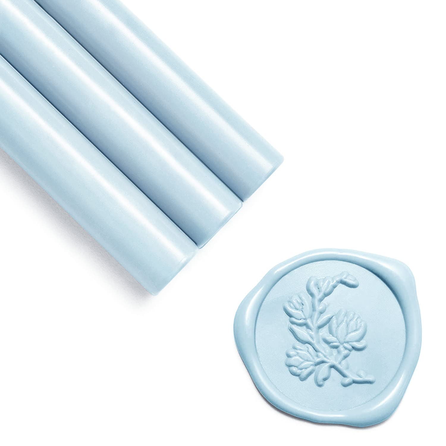 UNIQOOO Light Baby Blue Glue Gun Sealing Wax Sticks for Wax Seal Stamp - Perfect for Wedding Invitations, Thank You Card, Mails, Wine Gift Wrapping, Christmas Gift, Pack of 8