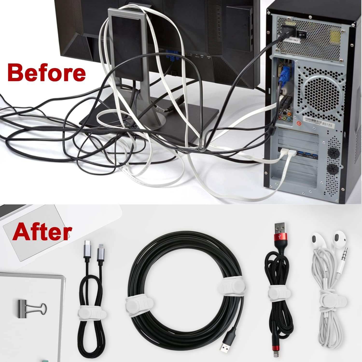 Nearockle 16Pcs Silicone Cable Straps Wire Organizer for Bundling Earphone, Phone Charger, Computer Cords, Reusable Cable Ties Cord Organizer in Home,Office,Kitchen,School(White)