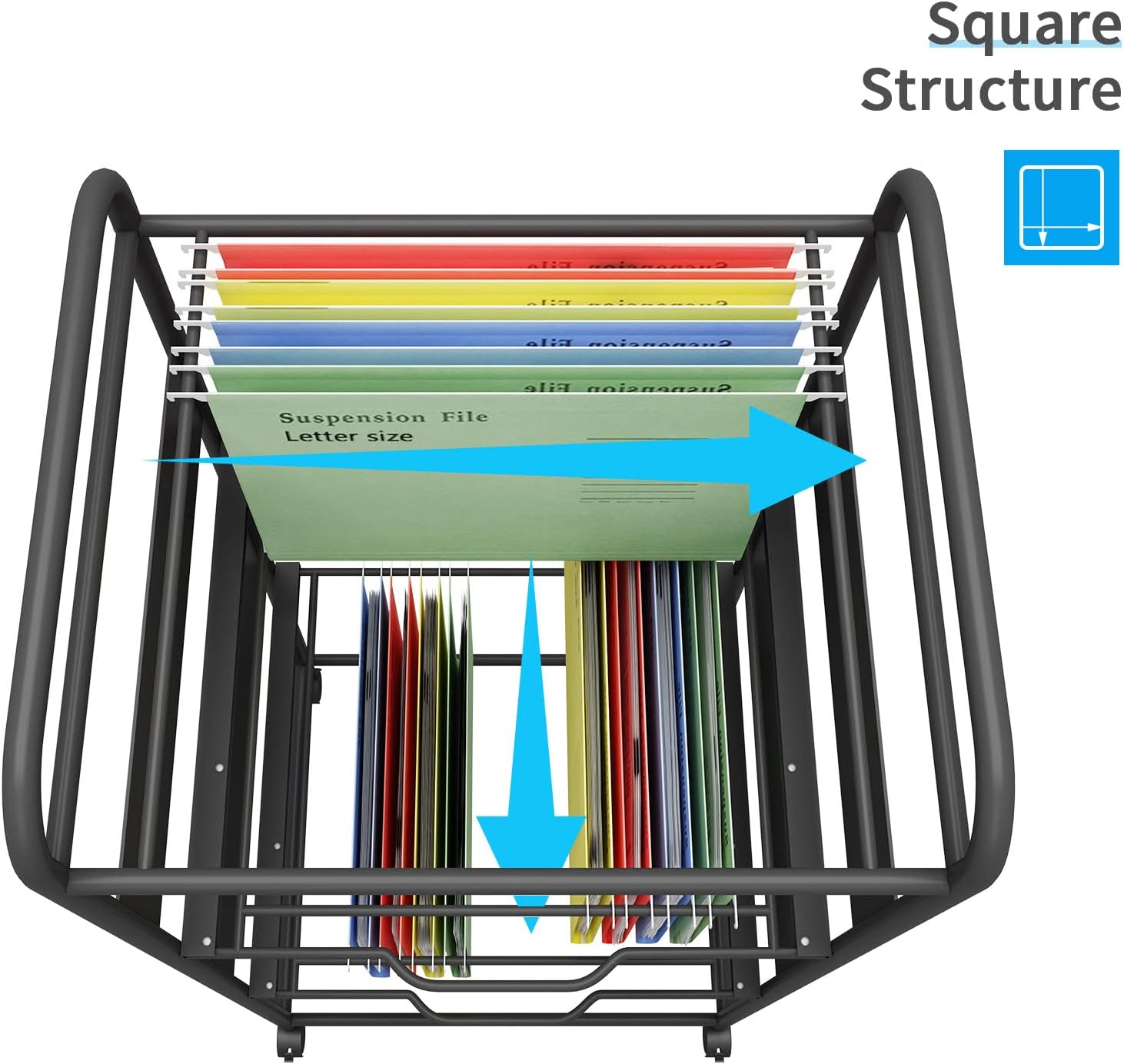 - 【Convenient Hanging Folder Cart】Special for letter size, square size can choose two different directions to hang files, each layer of frame can perfectly accommodate letter sized folders.