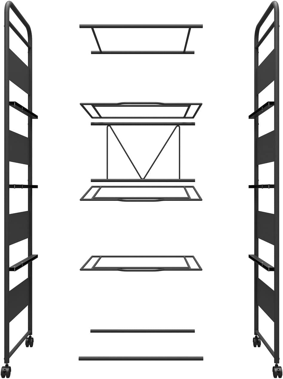 - 【Quality Metal Material】The movable file hanger cart is made of high quality metal material. Each steel pipe is 0.8mm thick and can bear 20lb pressure each tier.