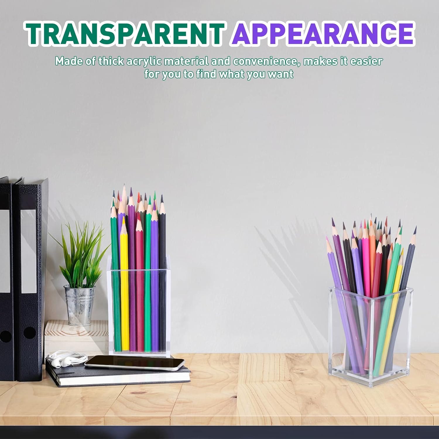 - ă10 Pack Pencil HoldersăThe package contains 10 pieces clear acrylic pen holders, the acrylic pen holder measures 6.5 x 6.5 x 10 cm/ 2.6 x 2.6 x 3.9 inches, Sufficient quantity and suitable size can meet your daily storage, and can keep our desktop clean and neat