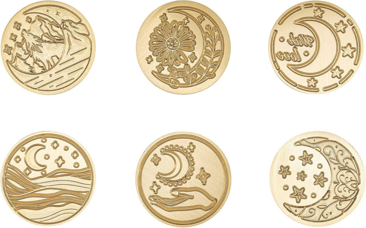 Yoption 6 Pieces Moon Series Wax Seal Stamp Set, Vintage Sealing Wax Stamp Heads + 1 Wooden Handle with Gift Box for Wedding Invitation, Christmas, Gift Idea