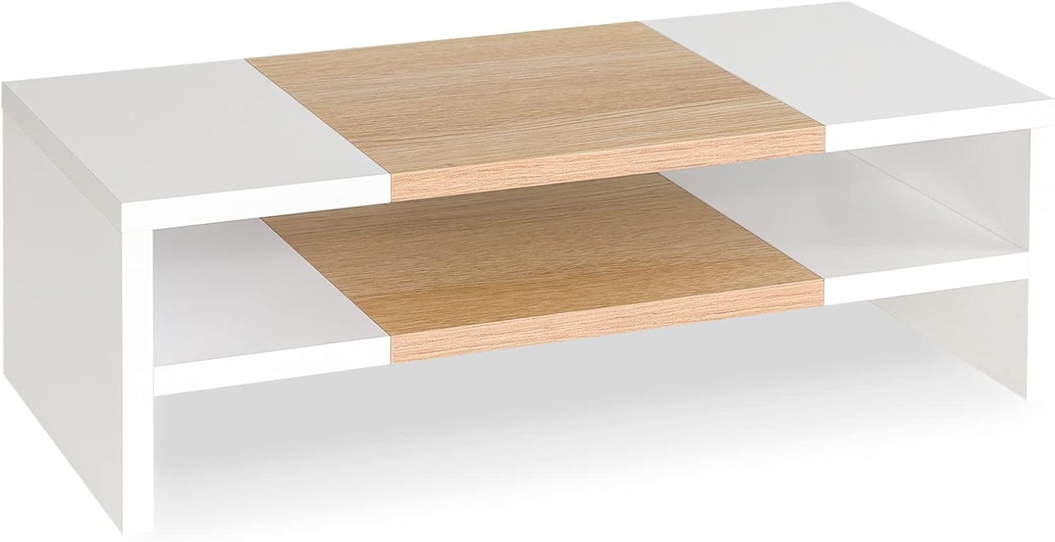 TEAMIX 2 Tiers Desktop Monitor Stand Riser 20 Inch Printer Stand with Storage Small TV Riser Laptop Wooden Desk Organizer Shelf Bookshelf Maple (White+Maple, 2 Tiers)