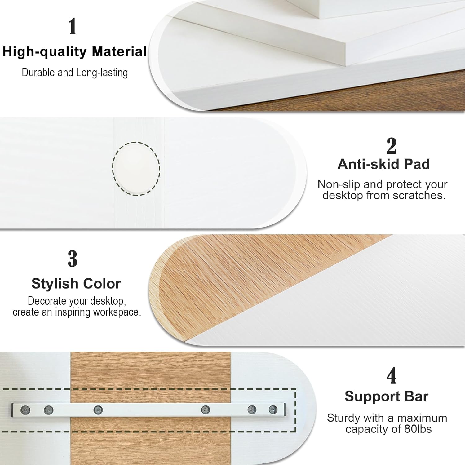 - Better Support to 80lbs: The computer stand is made of eco-friendly thicken MDF wood board, and process optimization to make the stand more beautiful and durable. This monitor stand riser is a good choice for your office, living room, bedroom, and study.