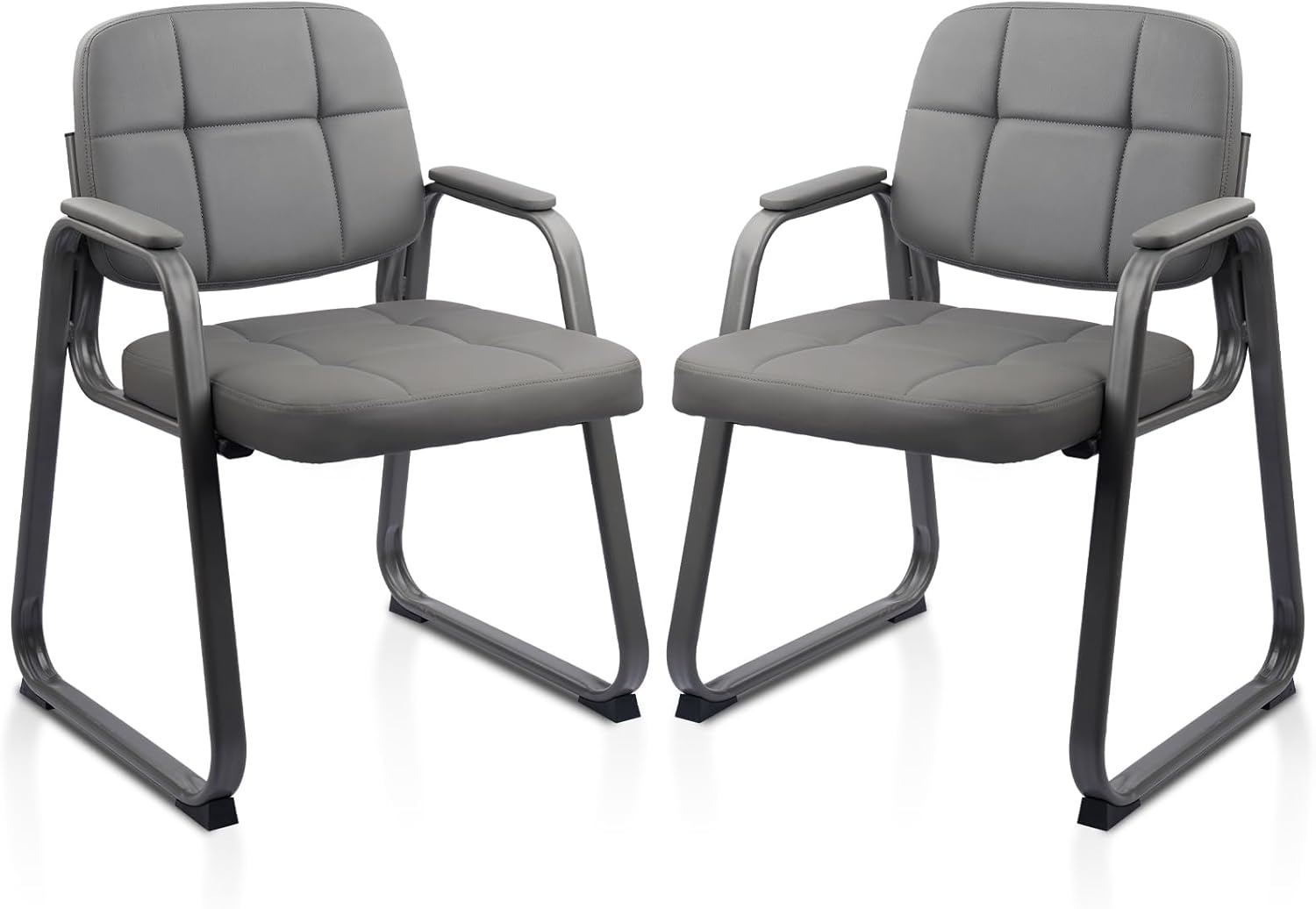 - PREMIUM QUALITY MATERIAL: This grey guest chair is made with finest quality craftsmanship and premium materials, a combination of PVC leather and durable sturdy frame, guaranteed to withstand the test of time.