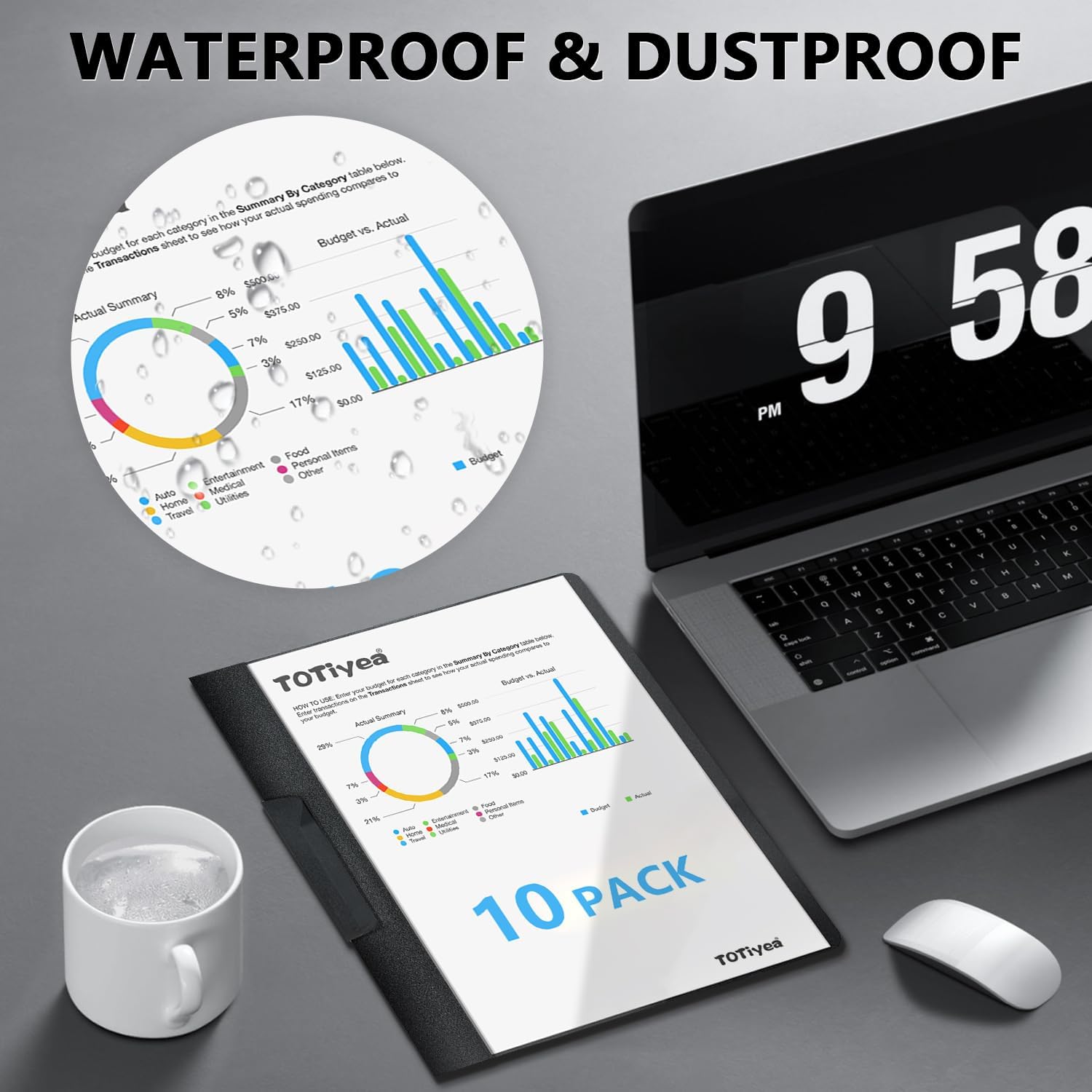 TOTiyea 10 Pack Clear Report Covers with Swing Clip, File Folder with Swing Clip, 30 Sheets Capacity, Slide Locking Report Covers, Letter Size (Black, 10 Pack)