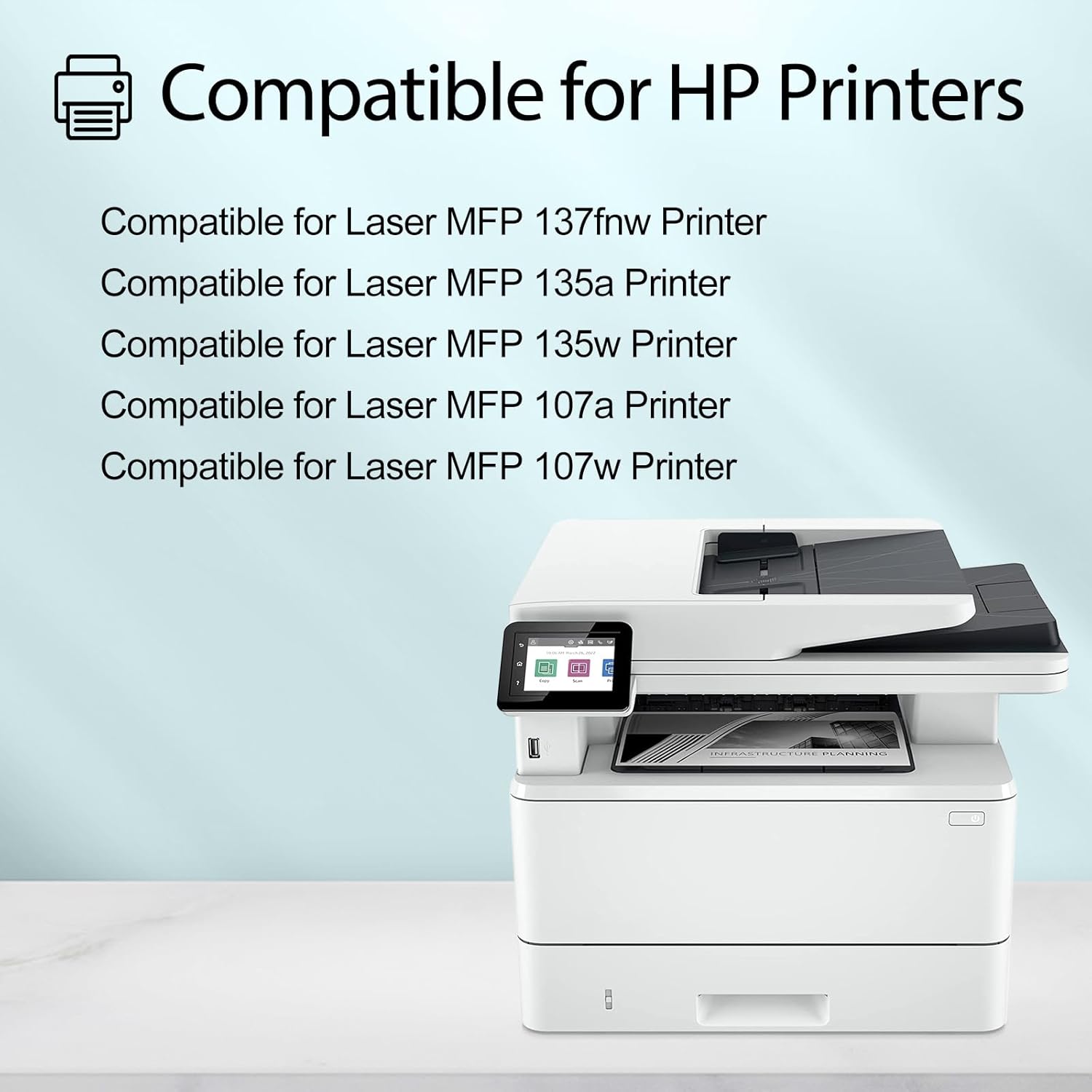 - Compatible for HP Printers (Made in North America) : Laser MFP 137fnw / Laser MFP 135a / Laser MFP 135w / Laser MFP 107a / Laser MFP 107w / Laser MFP137fwg / Laser MFP 135ag / 135r / 135wg / Laser 107r Printer