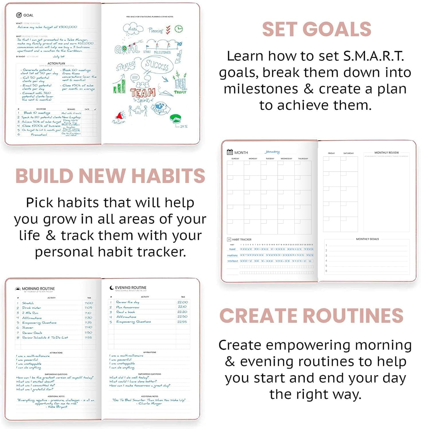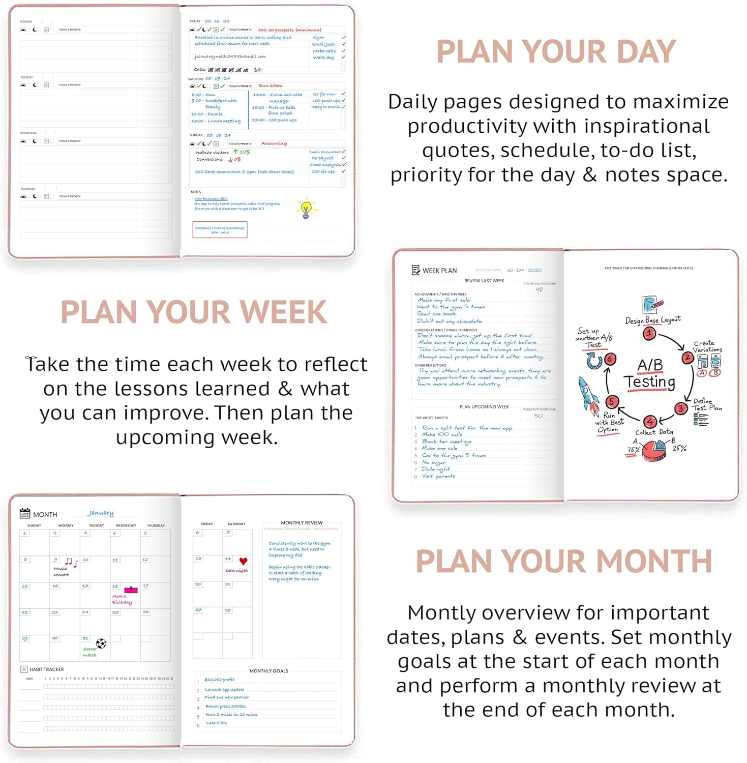- START ANYTIME & STAY CONSISTENT – With 52 weeks of undated daily planning pages, plus weekly and monthly review sections. You can begin anytime, improve your time management and build a consistent planning habit on your own terms.