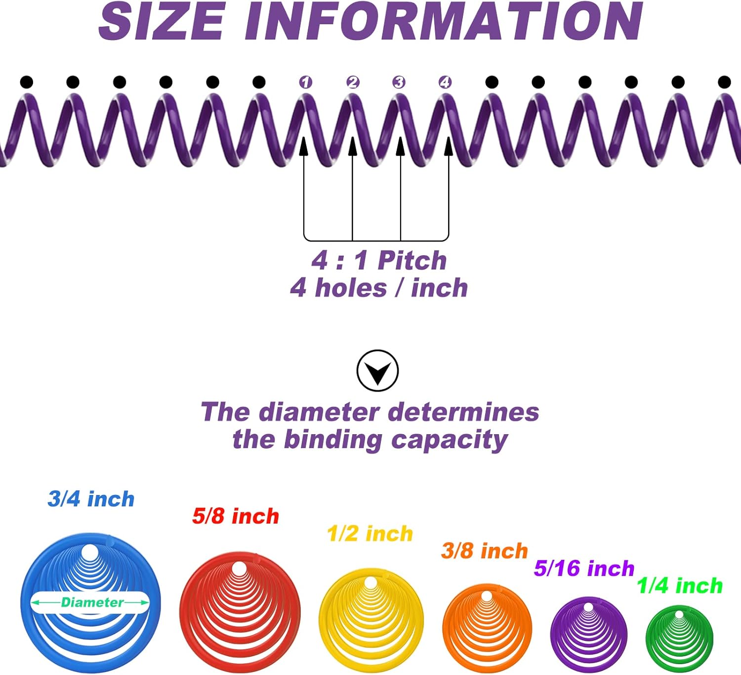 - 4:1 Pitch: spiral binding spines fit letter size paper (8.5 x 11.0 inches), the binding spirals have a 4:1 pitch, will fit any binding machine that punches 4 holes per inch; Helping you combine your report pages, calendars, documents and more, providing much convenience to your daily work or study