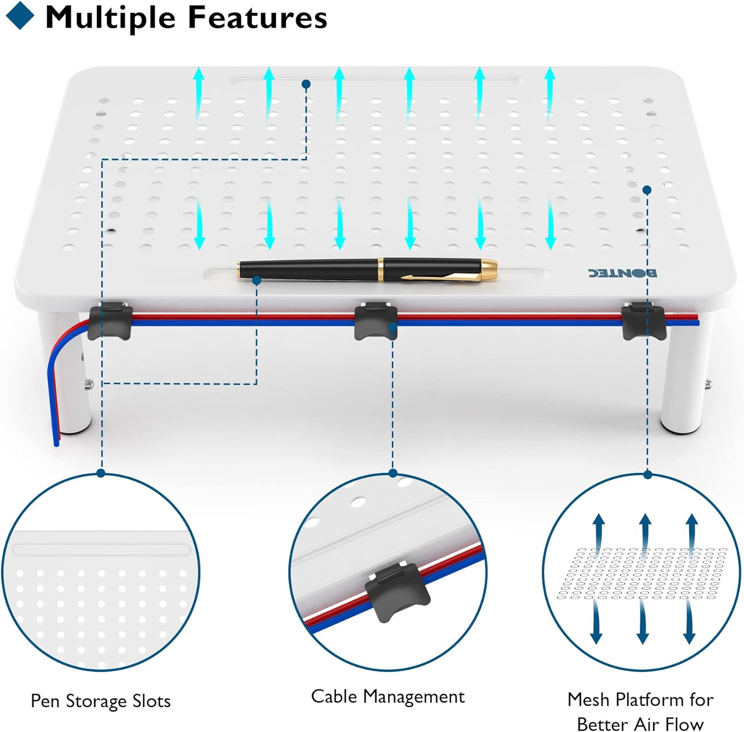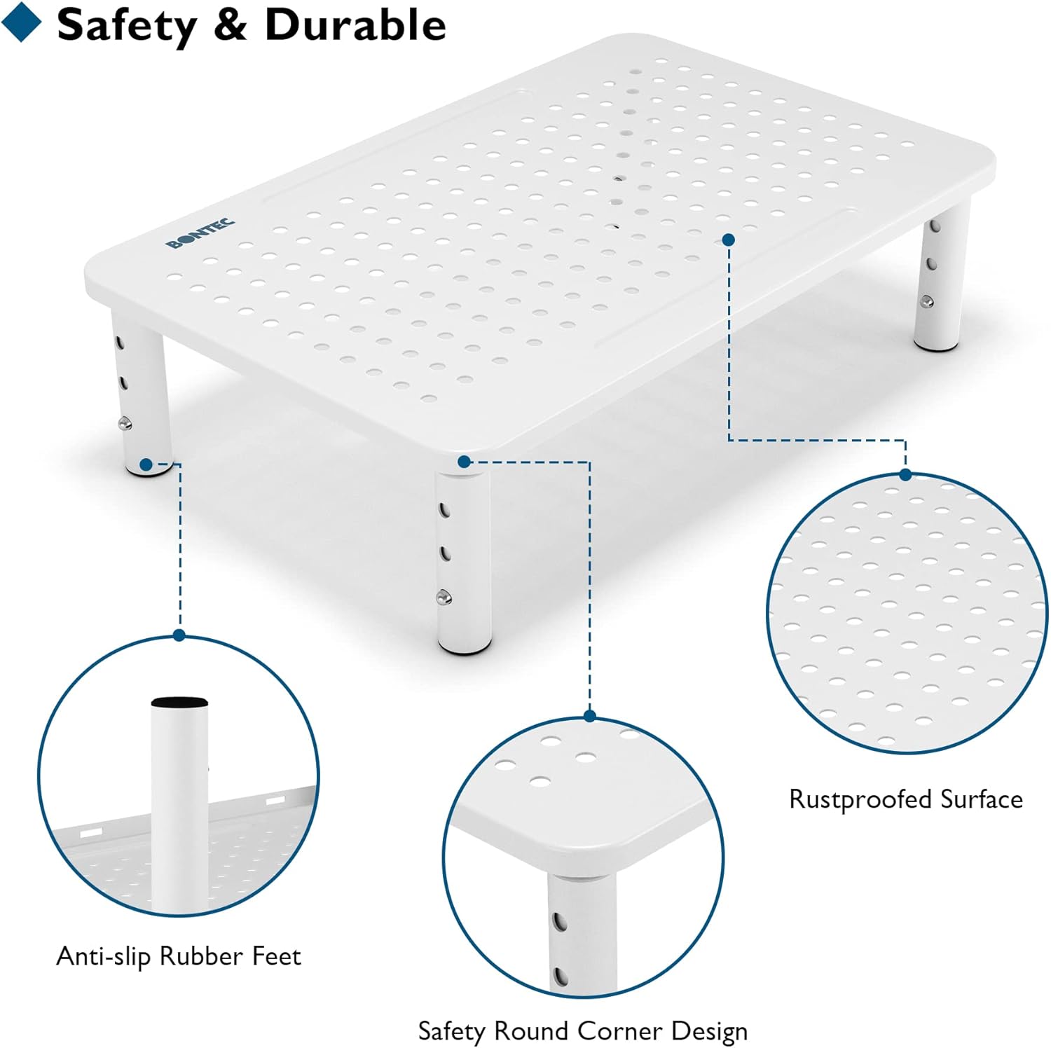 - ERGONOMIC THREE HEIGHT ADJUSTABLE DESIGN - Reduce neck and back pain by adjusting the height of your monitor stand to three comfortable levels: 3.9", 4.7", and 5.5" with one-touch press control. Perfect for improving posture and relieving eyestrain during long workdays