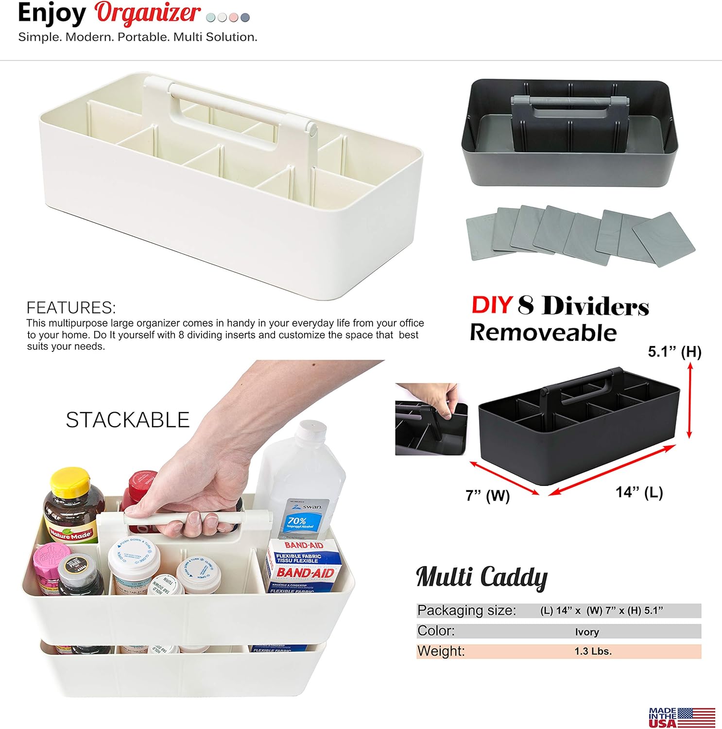 -Large Portable Caddy, DIY Dividers, 8 Compartments, School Office Supplies Home Business Organizer,Portable Basket with Handle Storage Organizer Modern Made in USA (4 PACK, Ivory)