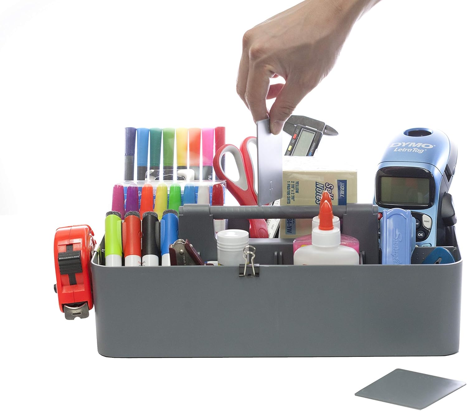 -Large Portable Caddy, DIY Dividers, 8 Compartments, School Office Supplies Home Business Organizer,Portable Basket with Handle Storage Made in USA (4 PACK, Orion Gray)