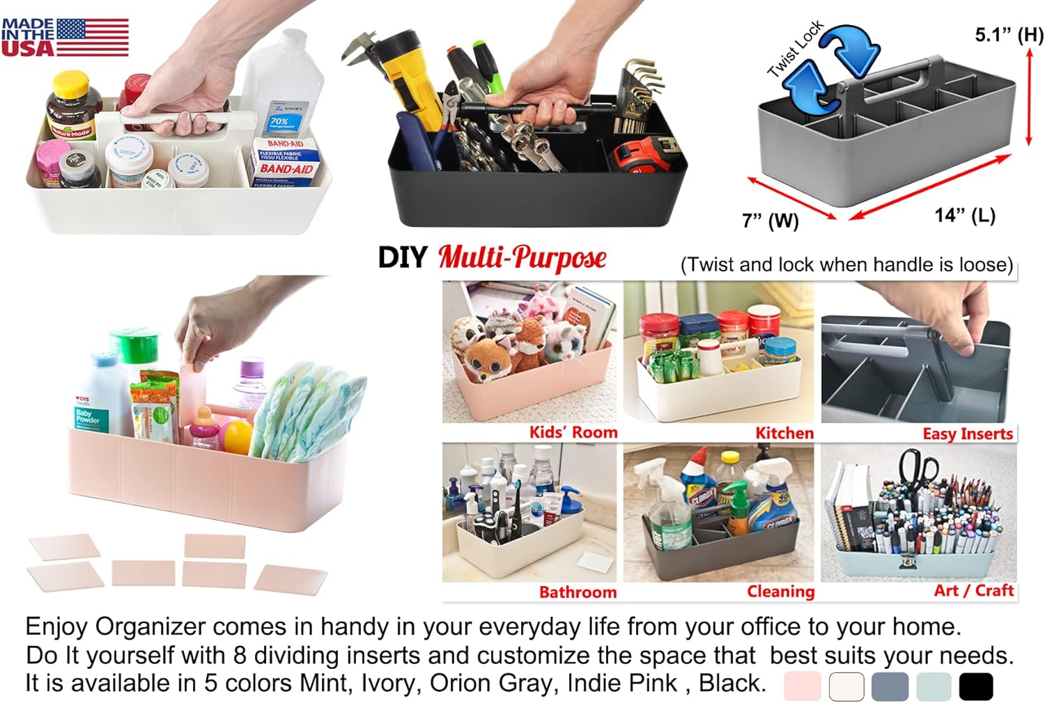 -Large Portable Caddy, DIY Dividers, 8 Compartments, School Office Supplies Home Organizer Basket with Handle Storage Organizer Made in USA (3 PACK, Indie Pink)