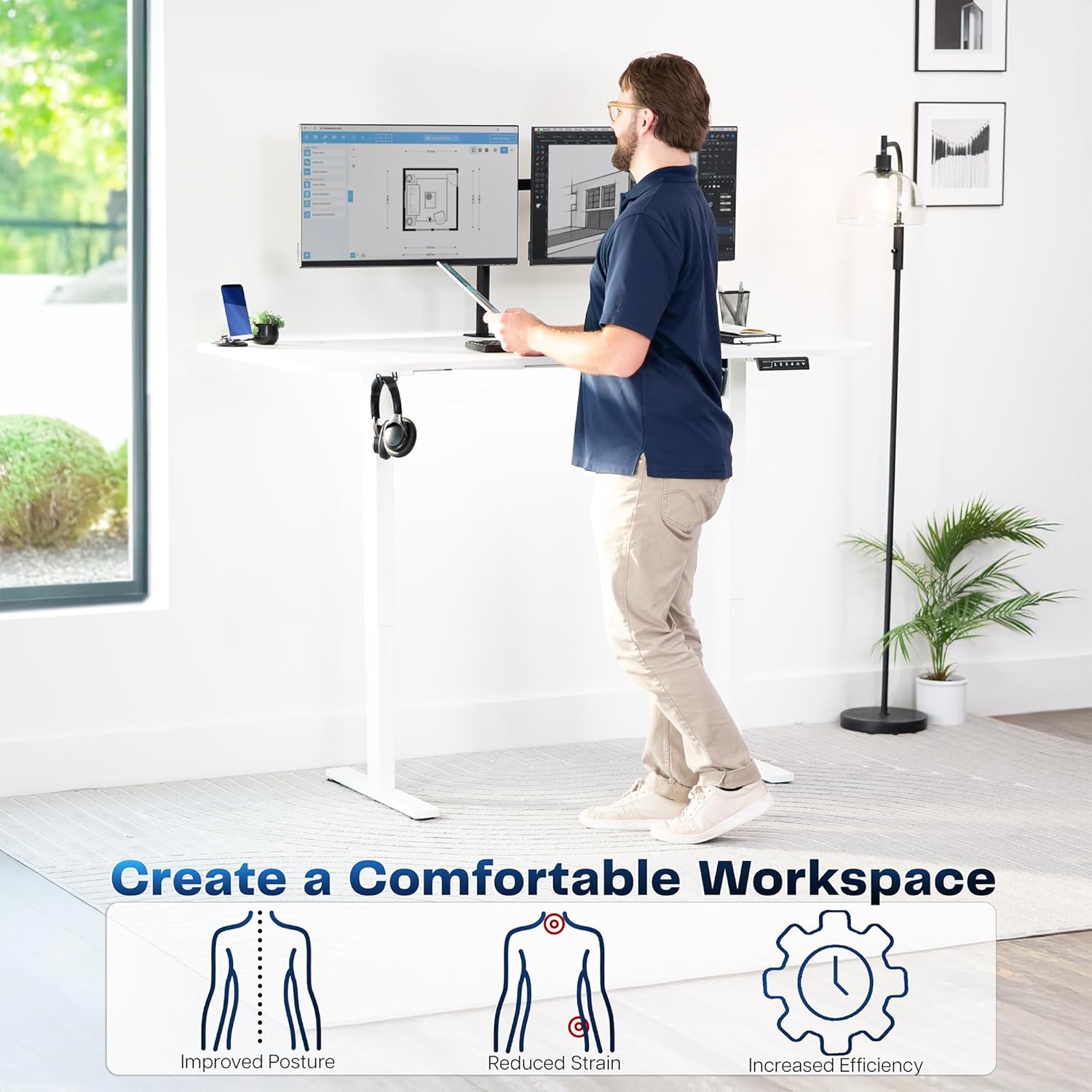 - Create Instant Active Standing: Go from sitting to standing in one smooth motion with this complete workstation providing comfortable viewing angles and customized user heights