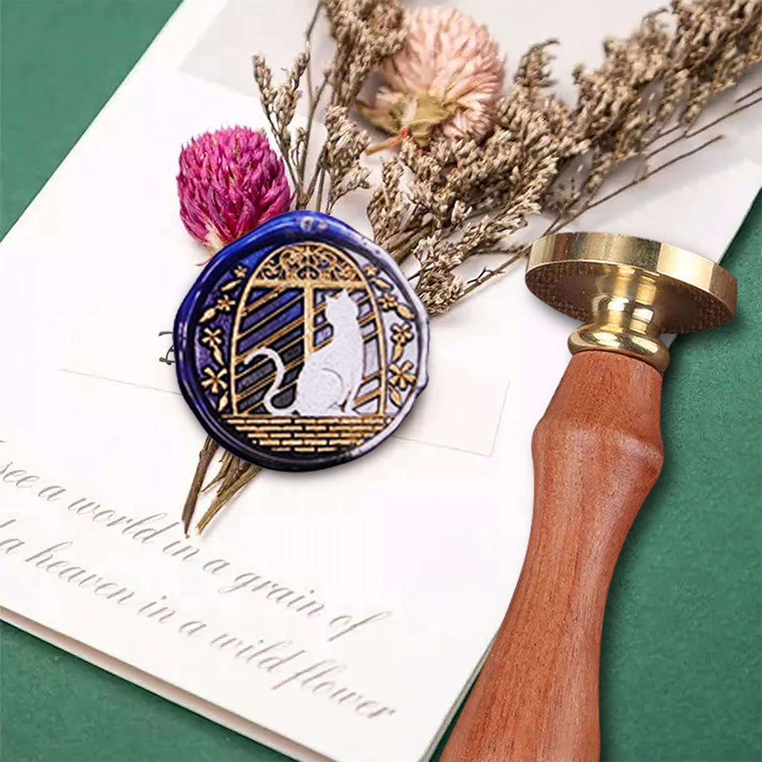 - [High Quality Wax Seal Stamp] The wax seal stamp is easy to install or exchange to a different wax seal head. Our wax seal stamp set is made of brass head and rosewood handle, which is durable and luxurious. Those copper head is also not easy to stick to wax.