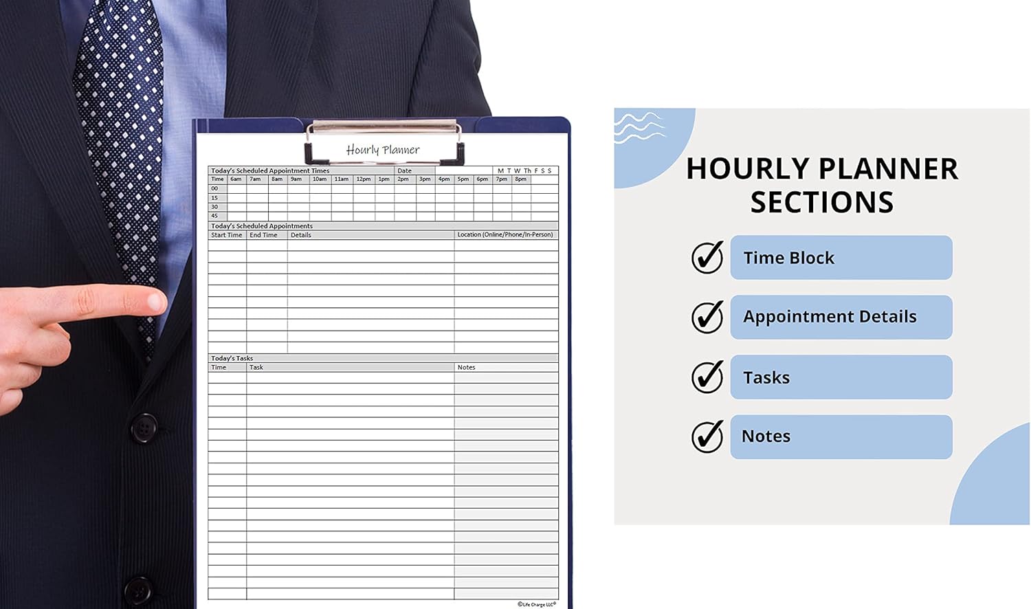 Hourly Planner Notepad. 60 Page Planning Pad w/Appointment Time Block, Task Log List & Note Sections. For Office Work Schedule & Time Management. 8.5 X 11, A4 Sheets.