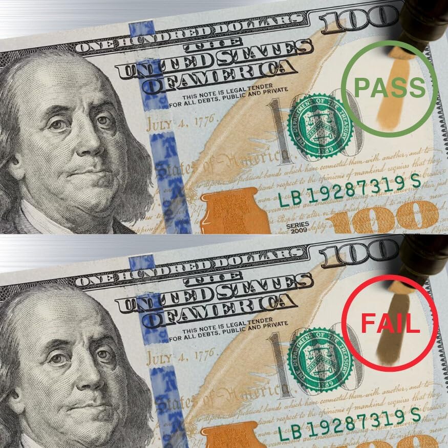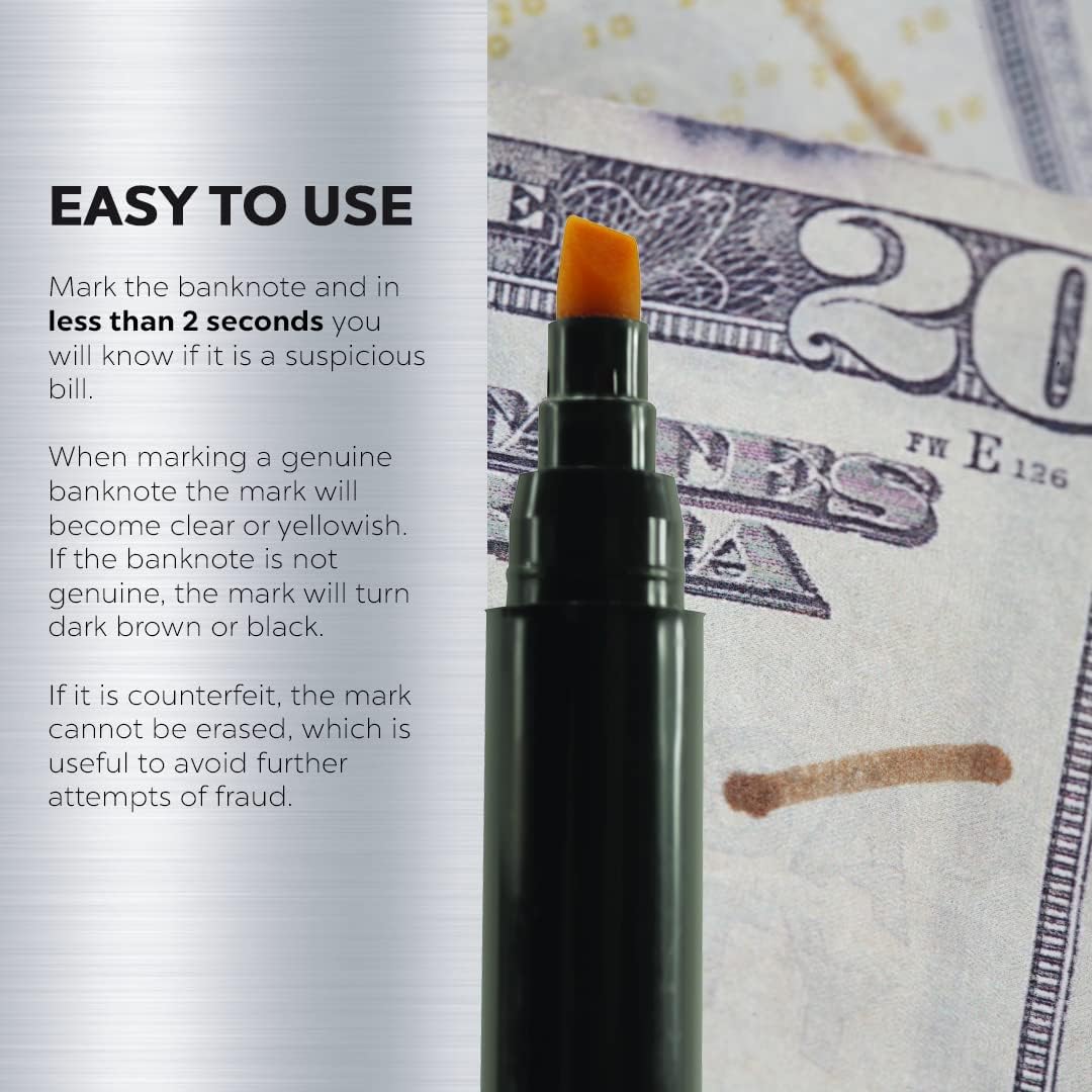 - EASY TO USE: All you need to do is mark the banknote and in less than 2 seconds you will know whether it is a suspicious bill. When marking a genuine banknote the mark will become clear or yellowish. If the banknote is not genuine, the mark will turn dark brown or black.