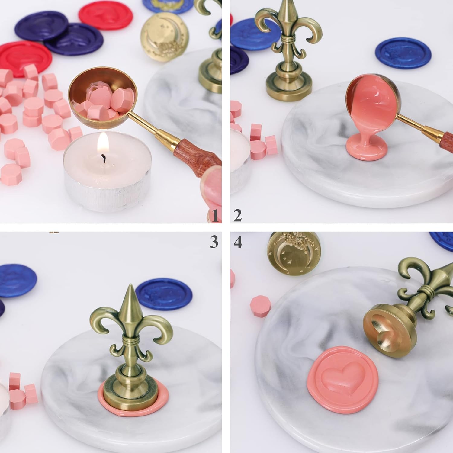- WAX SEAL STAMP MATERIAL: Made of electroplated bronze handle and seal head, easy to use and clear, the stamp head is smooth and shiny, non-stick.