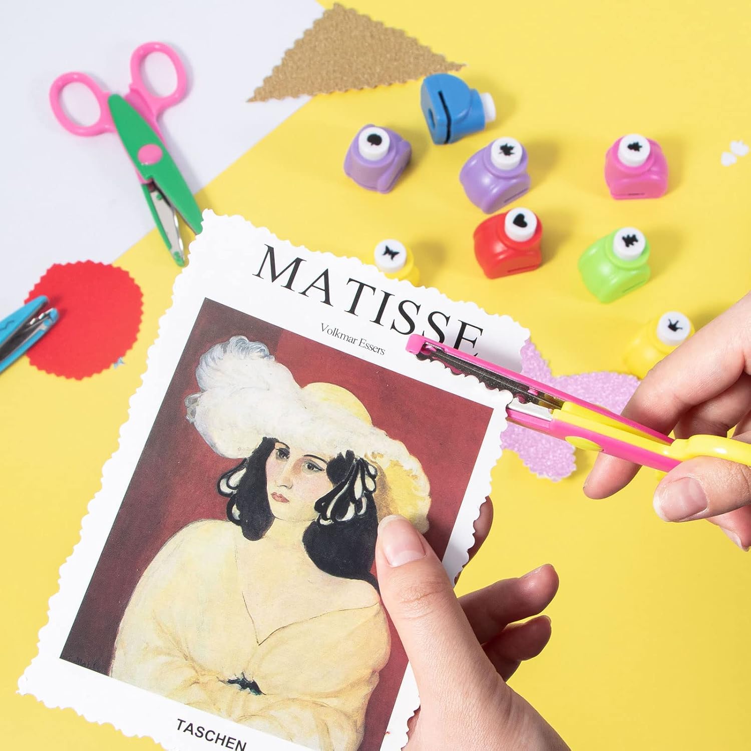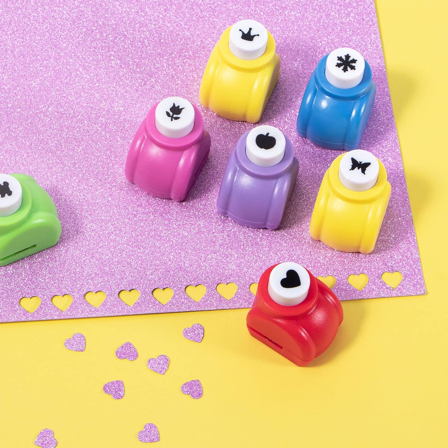 - Package: Package includes 6 pieces of colored craft scissors and 10 pieces of 1 inch hole punch.