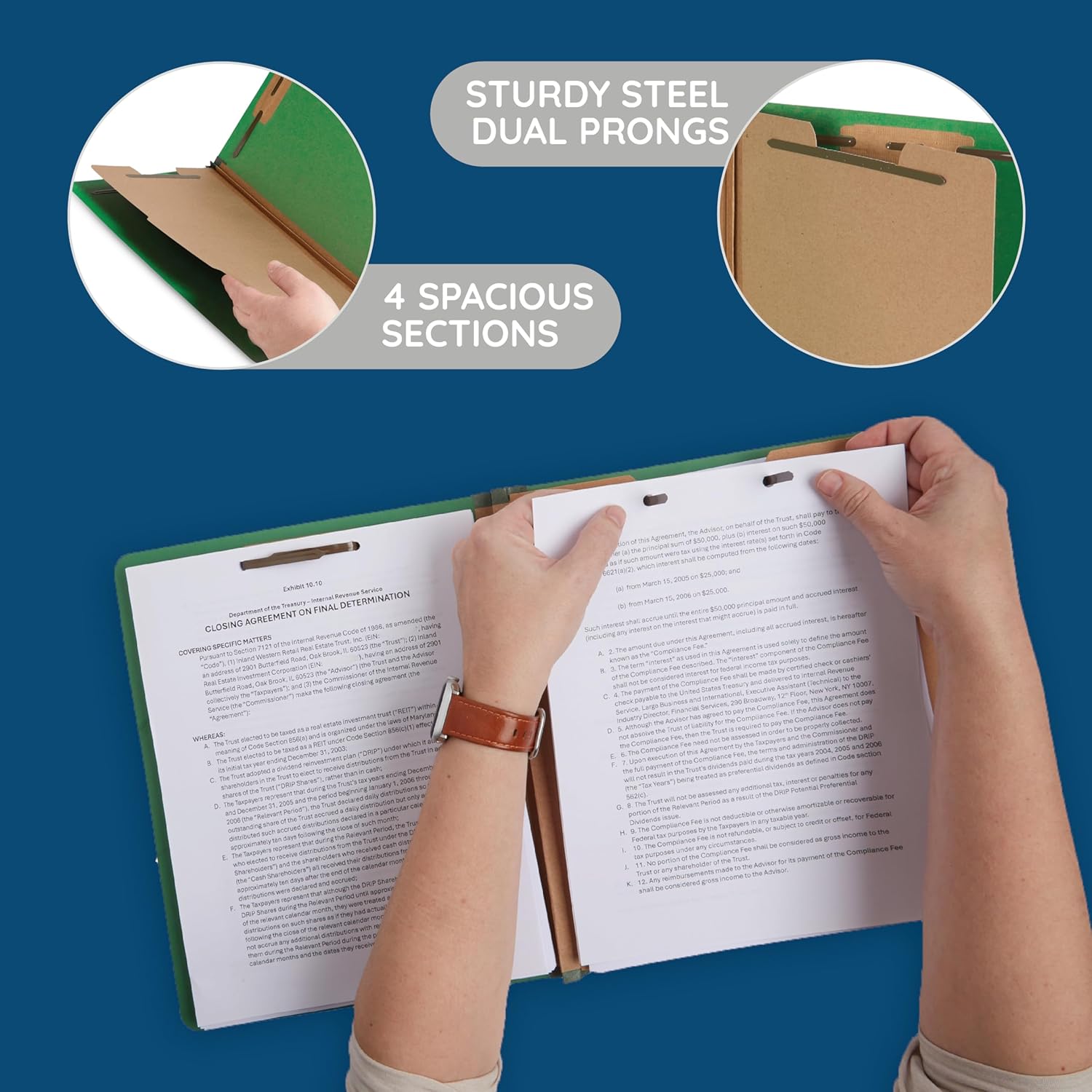 - Perfect for storing over 100 letter-size pages worth of information, our classification folders feature sturdy 25pt green pressboard, 17pt kraft paper dividers, and tear-resistant 2 inch Tyvek expansion for those extra bulky files.