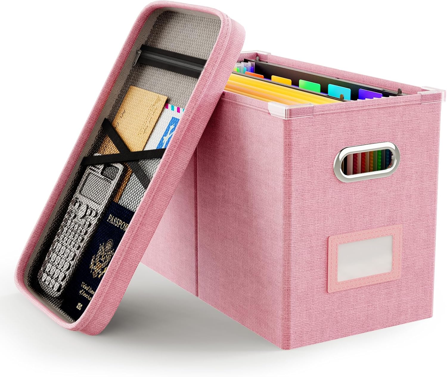 Oterri File Organizer Box with Lid, Hanging Filing File Box with Mesh Pocket, Document Organizer Box for Letter Files, Portable Storage Box with Smooth Sliding Rail for Office&Home (1 PCS, Pink)