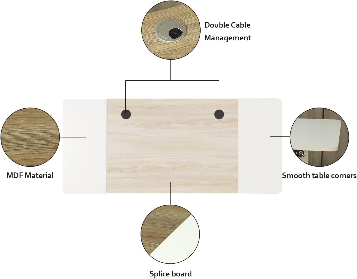 Electric Height Adjustable Standing Desk, 63 x 30inches Height Adjustable Computer Desk Sit Stand Desk Home Office Desks with Splice Board White Frame + White Top
