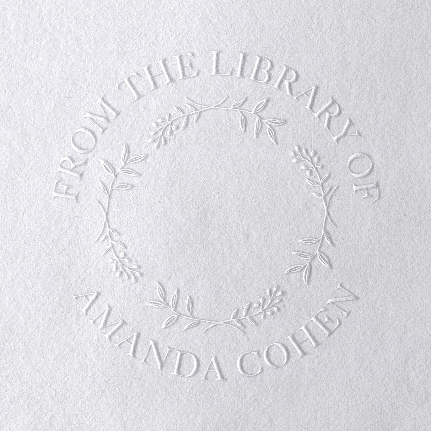 Personalized Book Embosser or Stamp Custom Round Library Embosser Teacher Library Book Stamp, Ex Libris Stamp, Gift for Book Lover | Wooden or Self Inking Stamp or Embosser (Wreath)