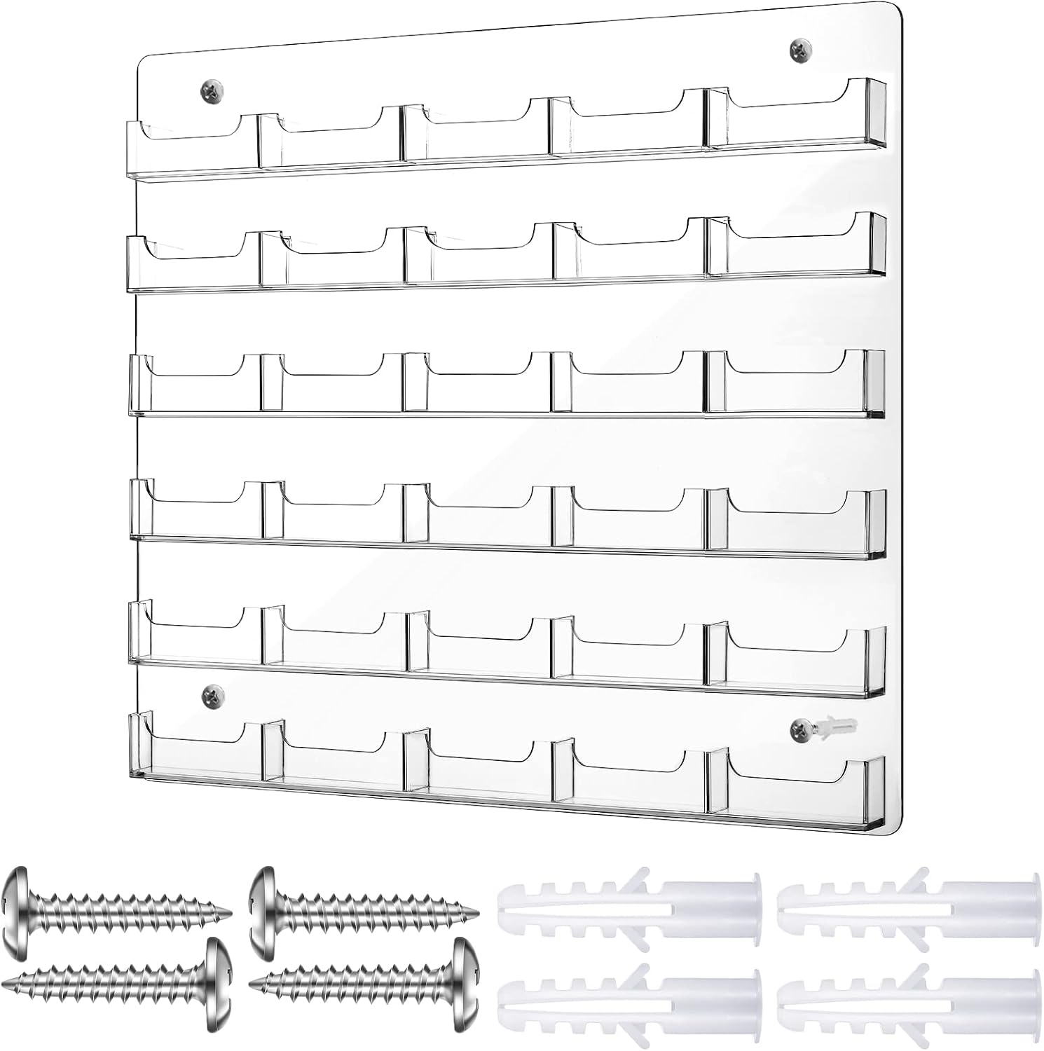 Hillban Acrylic Business Card Holder Wall Mount Clear Sticker Display Rack Multiple Card Holders Clear Acrylic Organizing Sticker Display Stand Pre Drilled(30 Pockets)