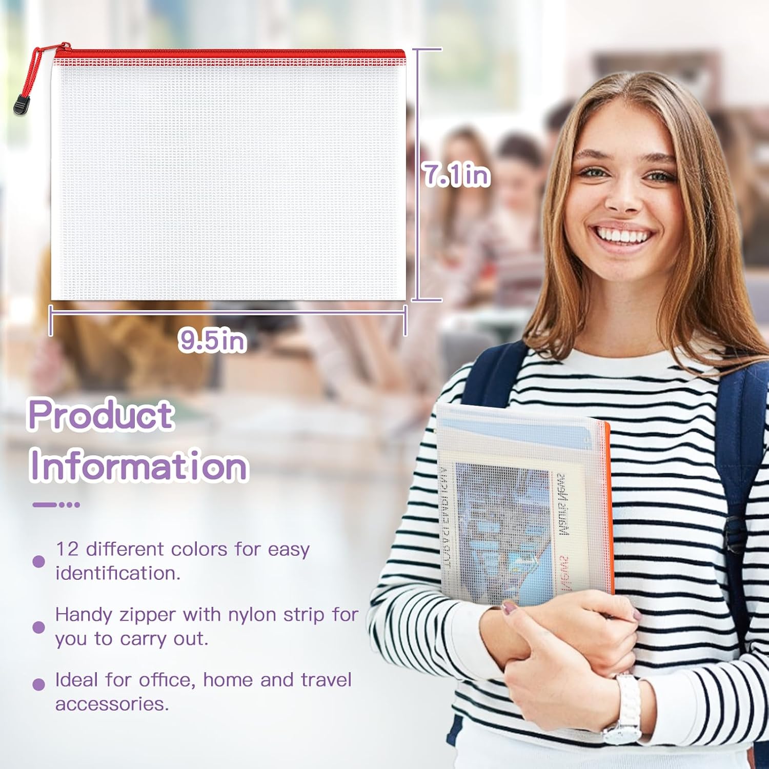Umriox Small Zipper Pouch, 9.5x7.1 in (12 Colors, 36 Packs), Mesh Bags with Zipper, Storage Bags, Zipper Bags for Office Supplies Travel Storage