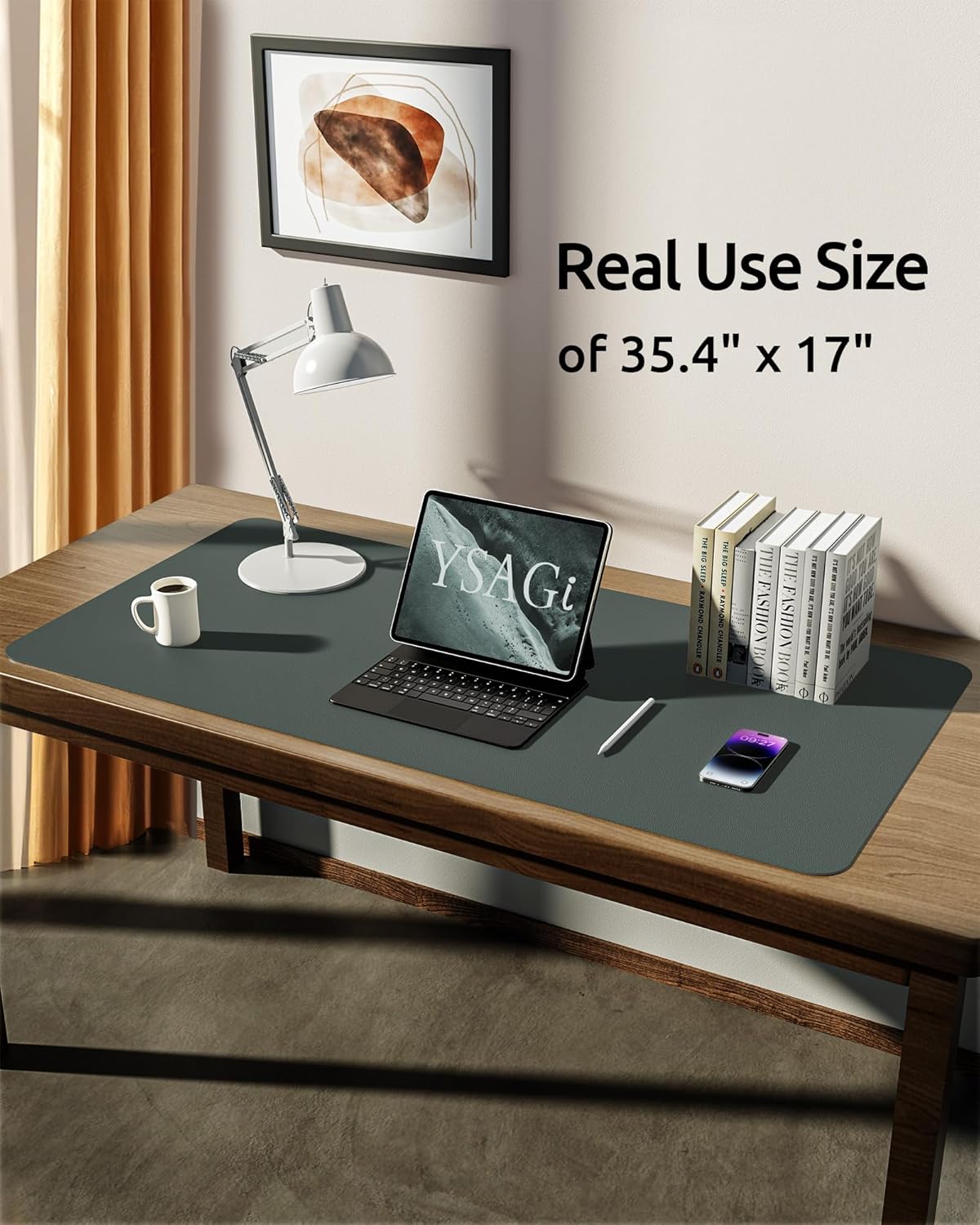 YSAGi Leather Desk Protector, Office Mat, Large Mouse Mat, Non-Slip PU Leather Blotter, Laptop Desk Pad, Waterproof Writing Pad for Office and Home (Dark Green, 35.4" x 17")