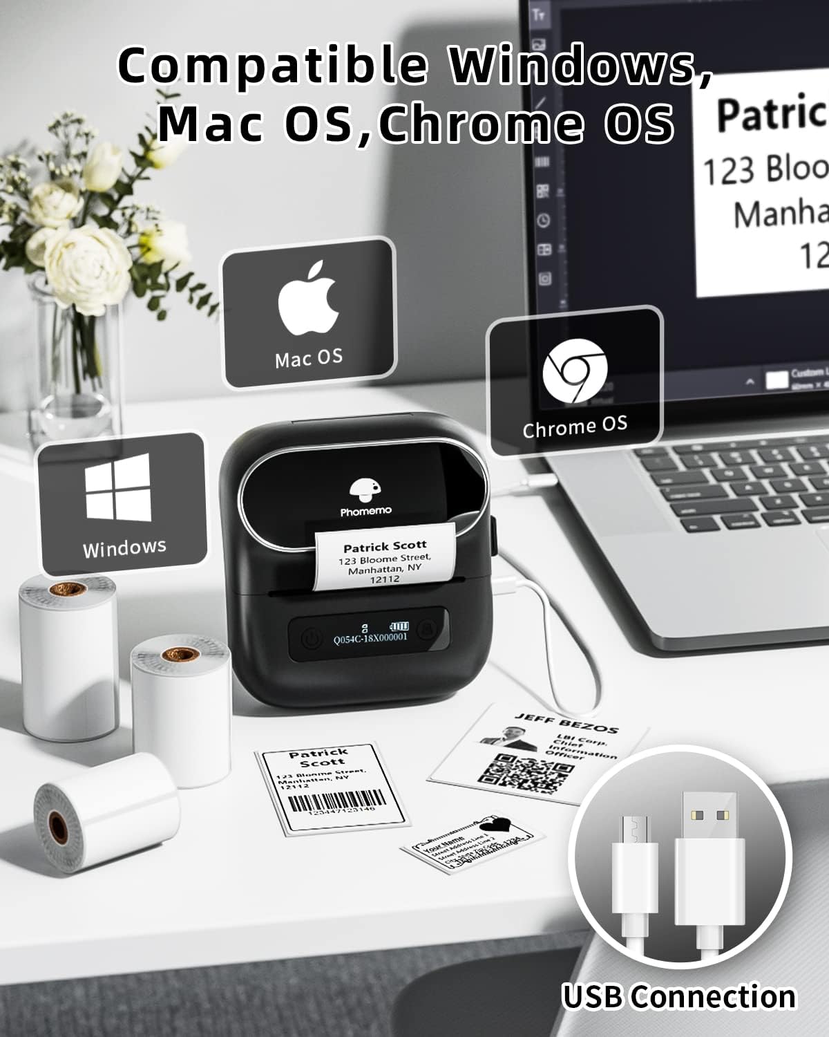 - Strong Compatibility - Phomemo Bluetooth label printer has high compatibility with IOS and Android mobile phones through Bluetooth, as well as USB connection support for Windows, MacOS, and ChromeOS. Watch our software installation tutorial for a hassle-free experience.