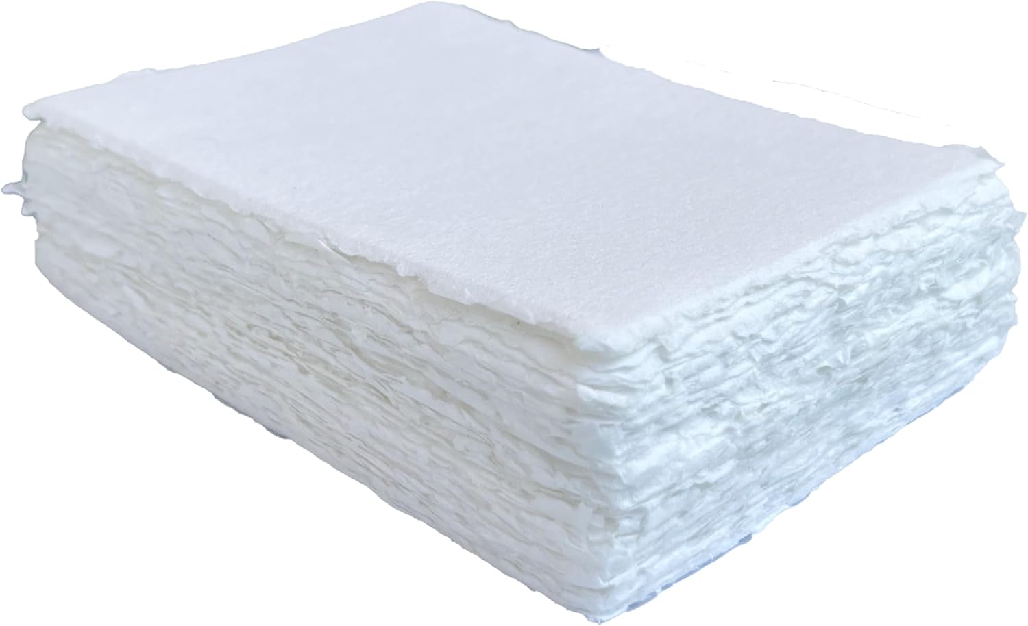 Handmade Deckle Edge Blank Paper - Mixed Media Loose Leaf Paper for Postcards, Invitations, Crafts and Announcements - White Color - Package of 50 - Thick 150 GSM - 5 x 7