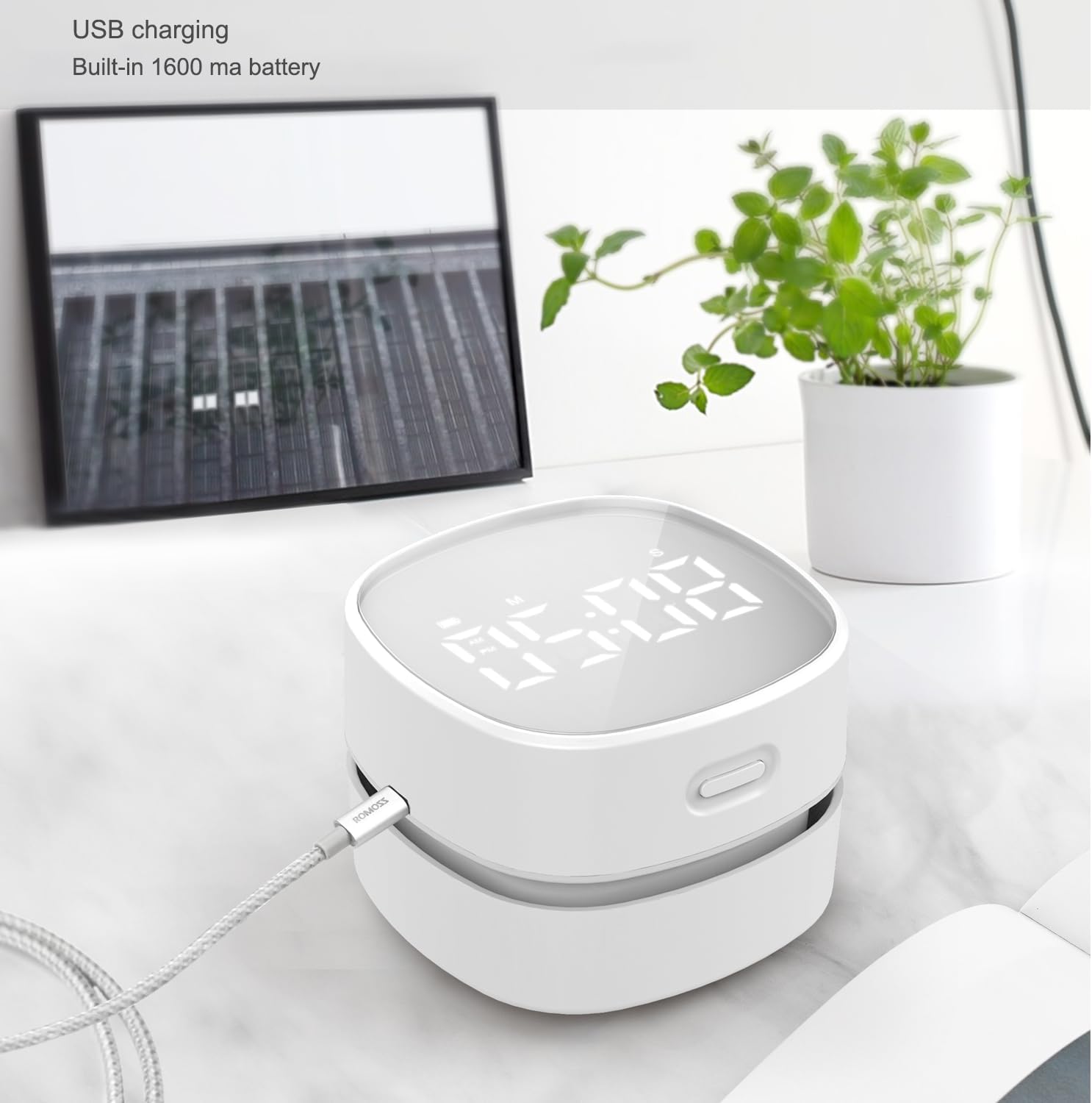 - 【1600 mAh Built-in Rechargeable Battery】Features a powerful 1600mAh built-in rechargeable battery. With the in-built battery, you can move and use it everywhere and our dust sweeper can be charged by car charger, mobile adapter, power bank, computer etc.