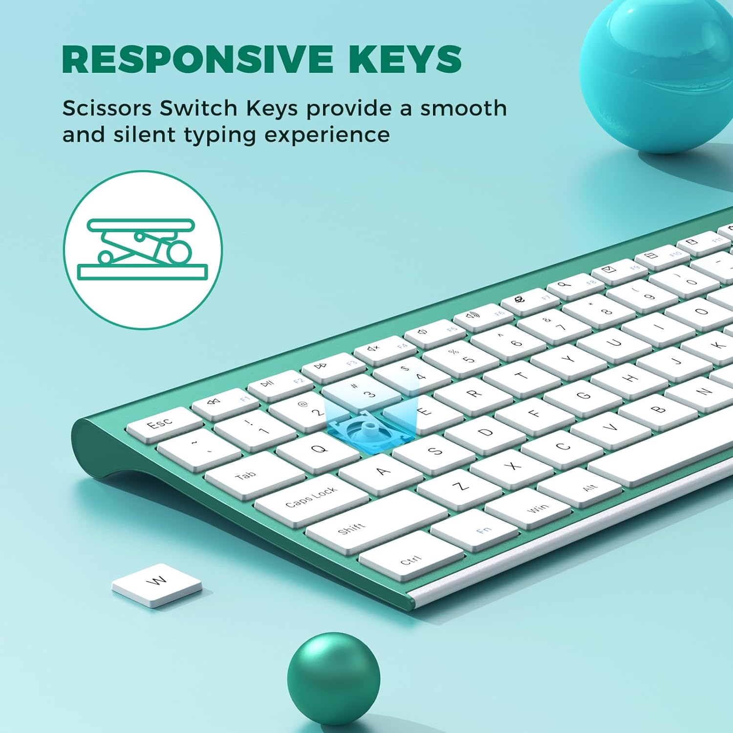 - COMPACT AND SLIM: Ultra slim (5.5mm) keyboard looks more stylish and elegant. High-End Scissor Switch design provides a better tactile response and comfortable and whisper quiet typing experience
