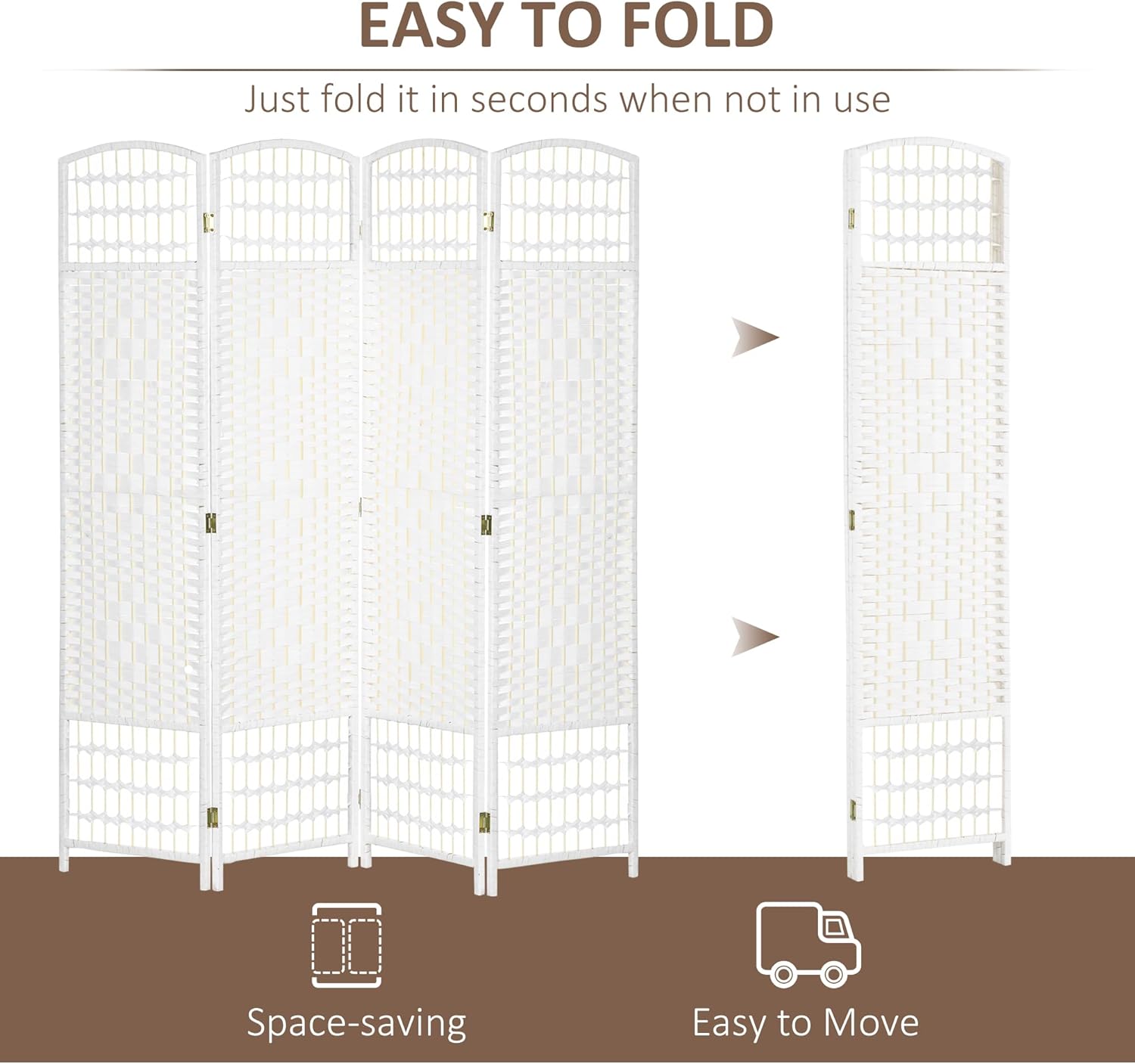 HOMCOM 4 Panel Room Divider, Folding Privacy Screen, 5.6' Room Separator, Wave Fiber Freestanding Partition Wall Divider, White