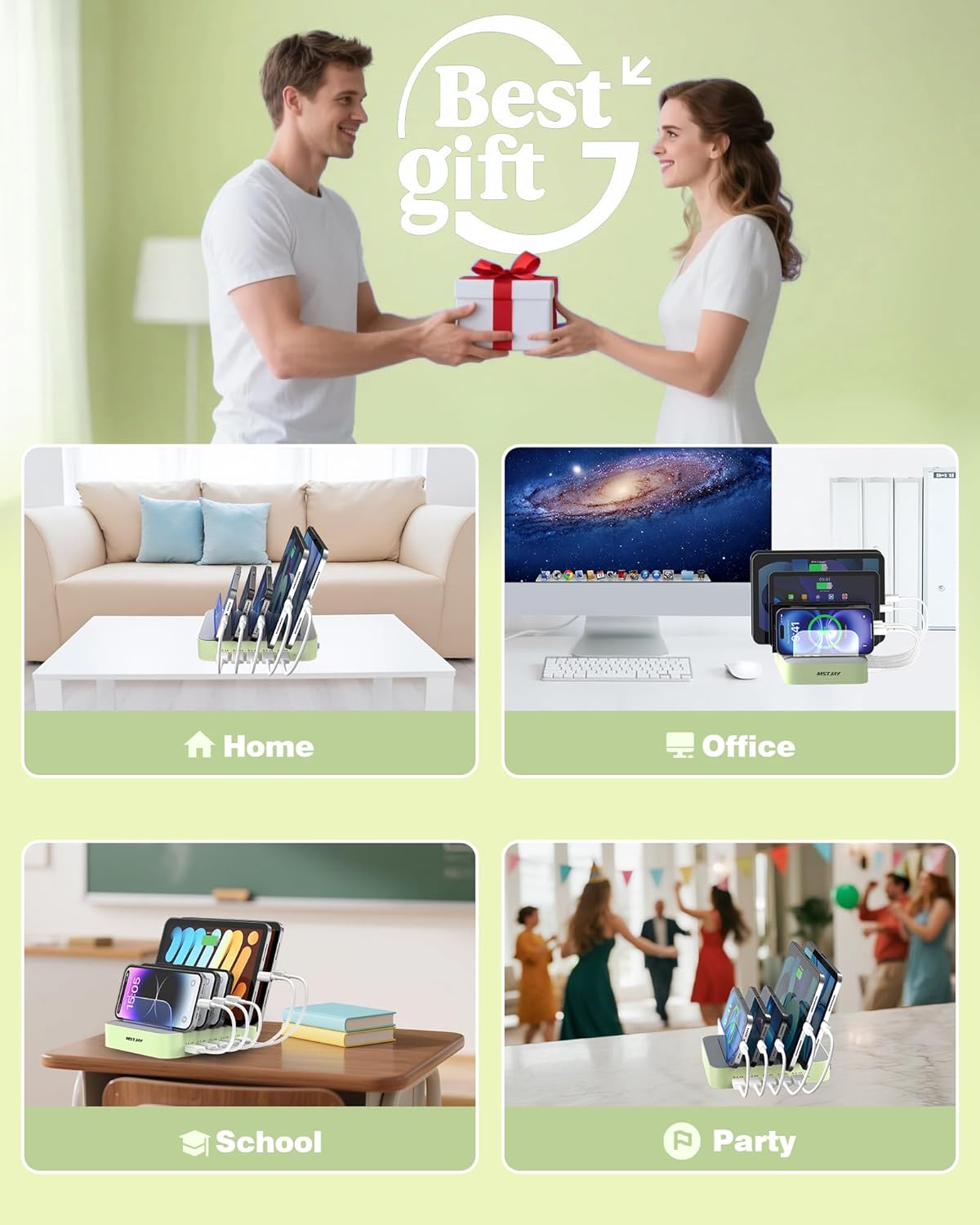 - ăLove by FamiliesăThis portable USB-A charger station is a great gift for your dads, moms, mother-in-law, father-in-law, sisters, brothers, coworkers, girlfriend, boyfriend. Charging stations can be used for your home, kitchen counter, desktop, nightstand, office, school, hotel, or traveling.