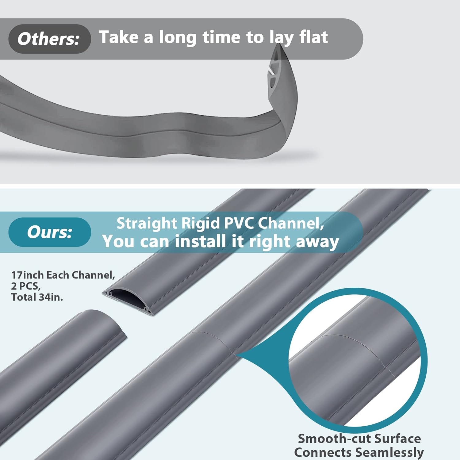 Cord Cover Floor 34in (2 x L17in), Large Capacity Floor Cable Cover, Hard PVC Cord Hider, Wire Cable Management Raceway, Grey, Cord Cavity - 1.8"(W) x 0.6"(H)