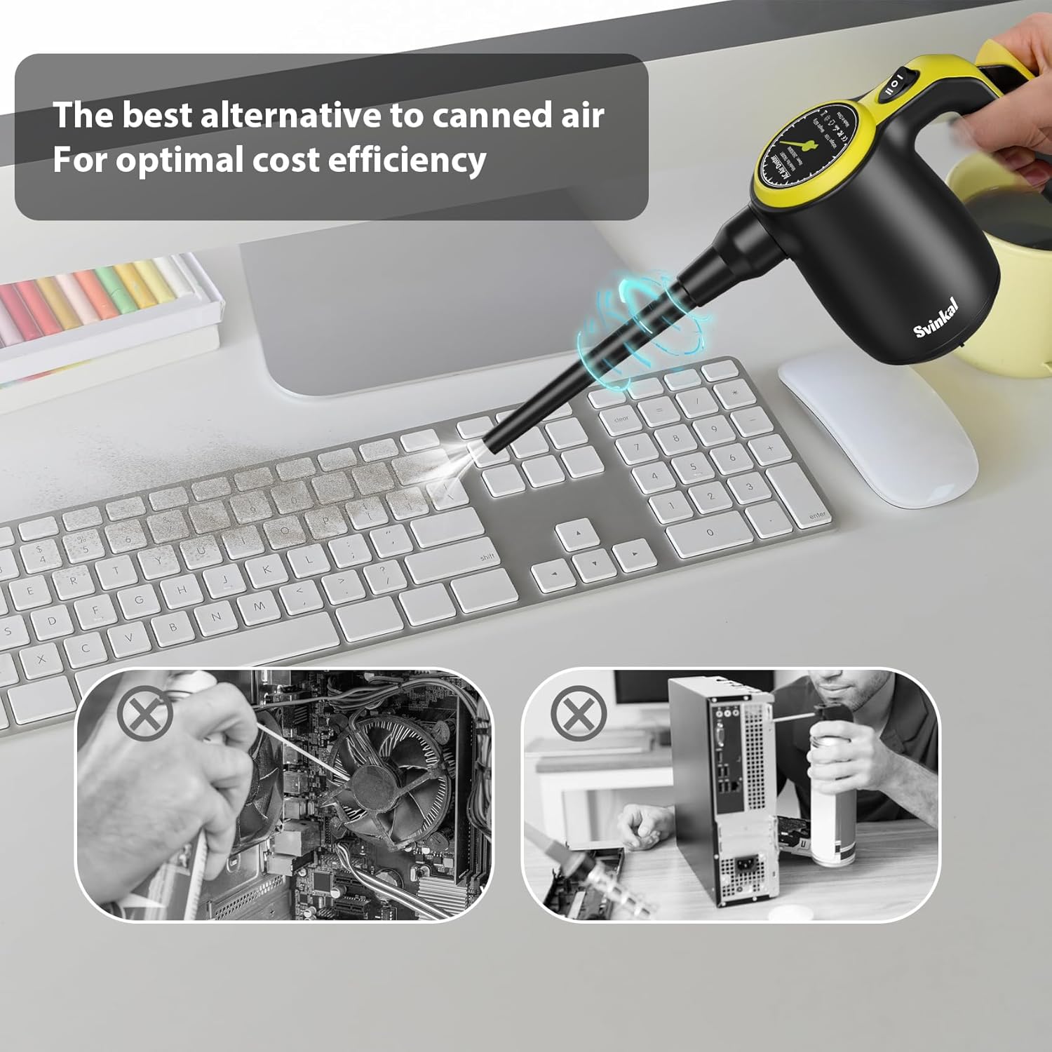 Compressed Air Duster for Electronics, Canned Air Electric for PC, Laptop, Console, Electronics and Home Cleaning, Replaces Compressed Air Cans.