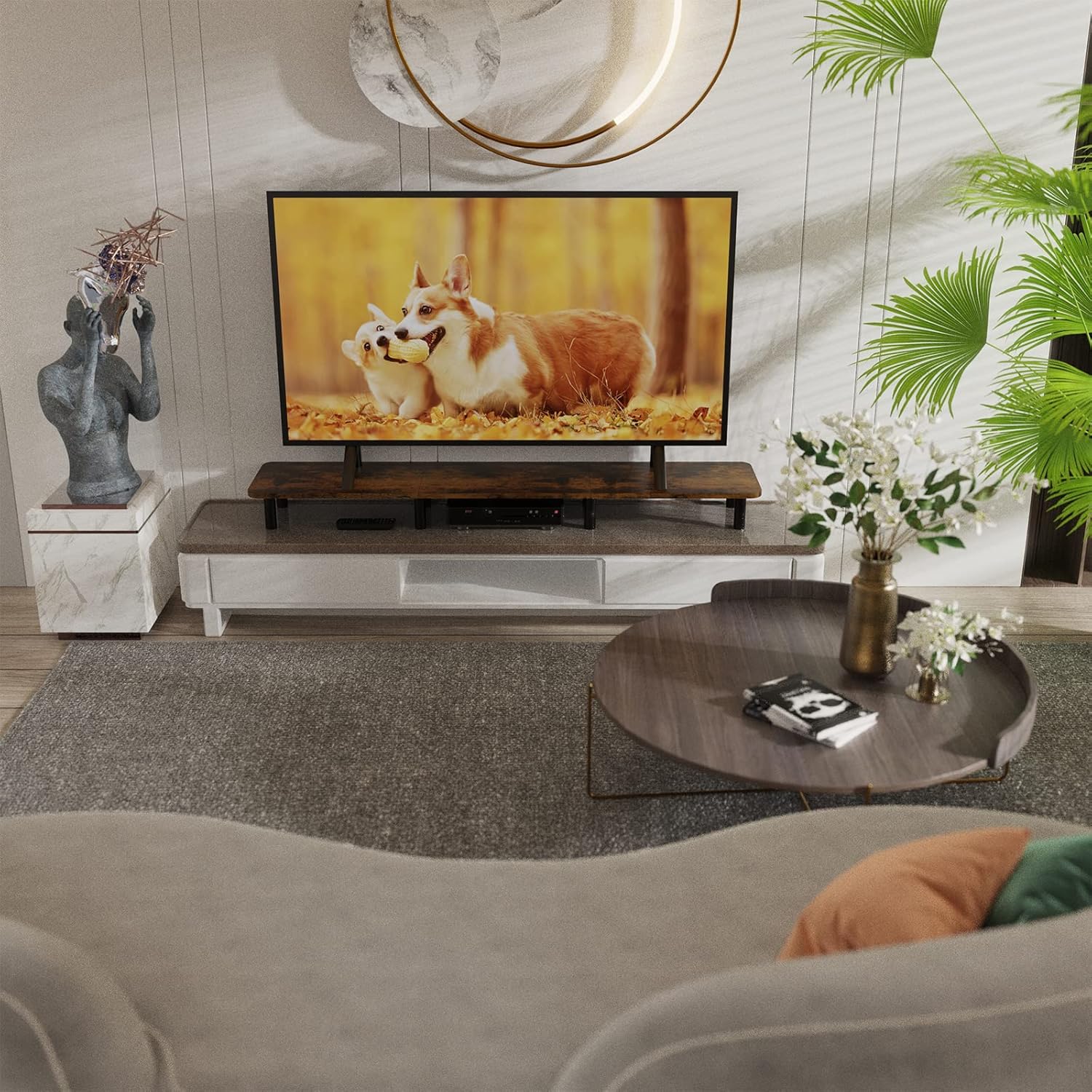 - 【Extra-Long Design for Dual Monitors & More】 This 43.7-inch wide monitor stand riser is designed to comfortably hold two monitors, laptops, or even a TV, providing ample space for your home office or workspace. Its extra-long design ensures your desk stays organized and clutter-free.