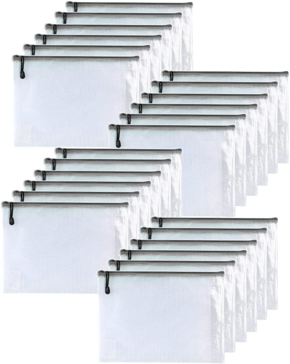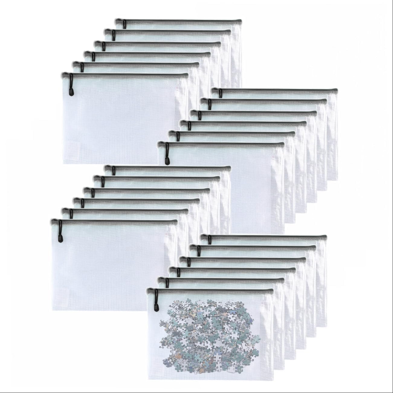 Oaimyy-24PCS-7 x 11" inches-Mesh Zipper Pouch, Plastic Zip File Folders Puzzle Bags for Organizing,for Office Supplies,Travel,Home Storage-Black