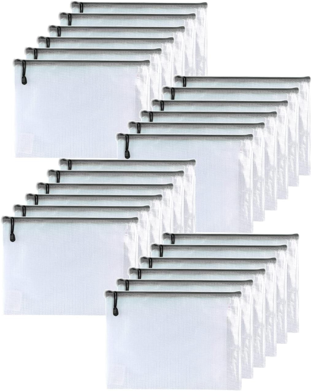 Oaimyy-24PCS-9 x 12" inches-Mesh Zipper Pouch, Plastic Zip File Folders Puzzle Bags for Organizing,for Office Supplies,Travel,Home Storage-Black